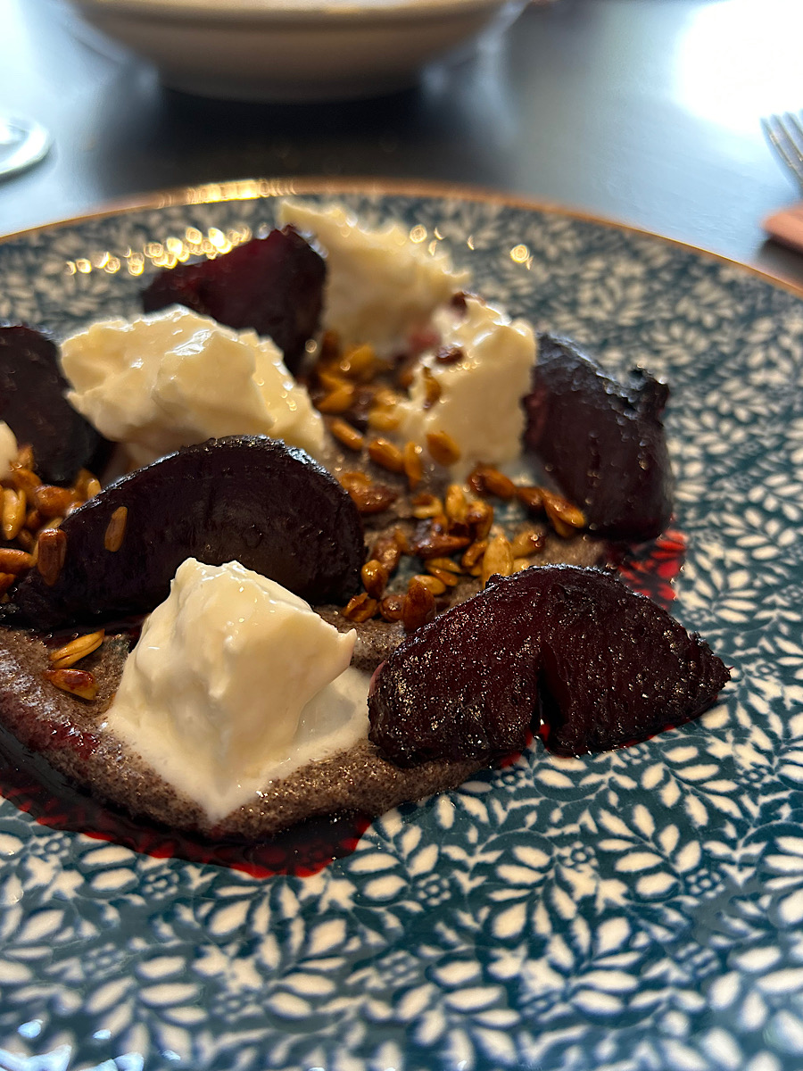 Vinska karta sadrži tridesetak etiketa inozemnih i hrvatskih prirodnih vina. Kruh dolazi iz Sala, što znači da je fenomenalan. U srijedu oko jedan u Bekalovoj su se otvorenoj kuhinji zapalile vatre. Prvo jelo s vatre koje smo probali, bio je tahini od maka, s mariniranim škripavcem i pečenom ciklom.