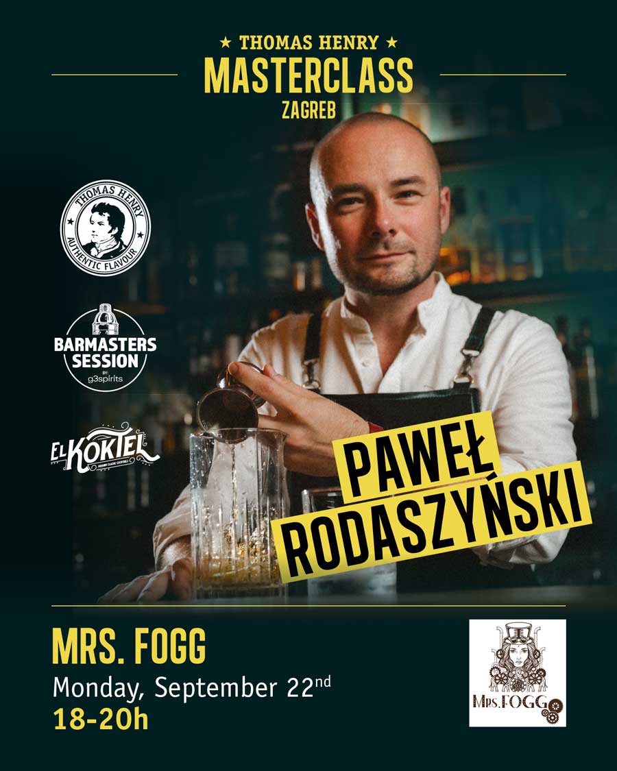 Pawel Rodaszynski za nekoliko dana dolazi u Hrvatsku. Rodaszynski, koji radi kao brand experience manager za Thomas Henry, predstavit će više koktela s Thomas Henry mikserima. Hrvatska turneja vlasnika El Koktela počinje u Zagrebu, u ponedjeljak 22. rujna u novozagrebačkom baru i pizzeriji Mrs. Fogg, gdje će Pawel Rodaszynski održati masterclass i odraditi večernju smjenu.