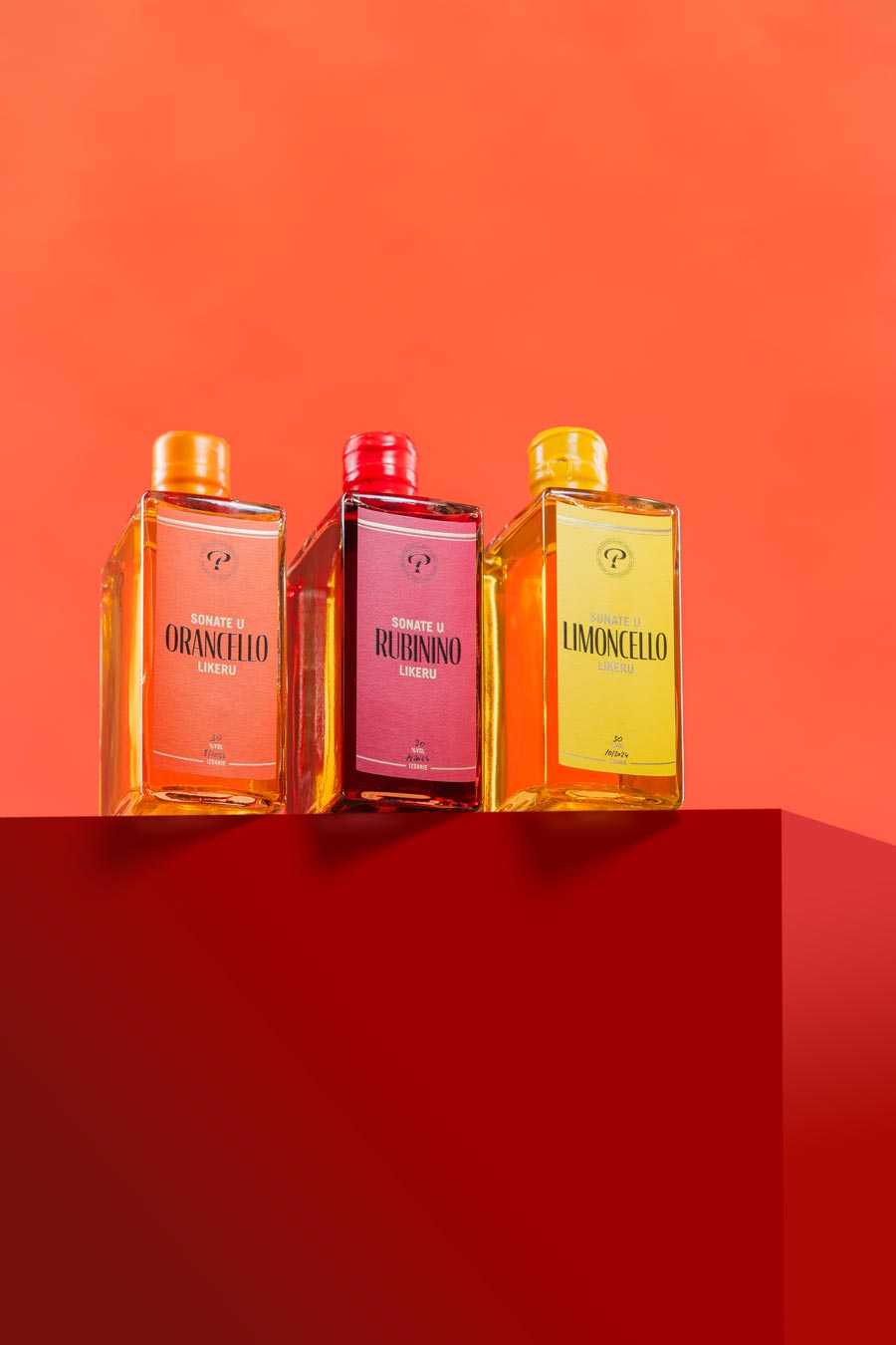 Te “naopake” etikete su posebna priča. Naravno, etikete nisu postavljene naopako, samo su drugačije. Liniju konceptnih likera iz Poetica destilerije za sad čine Limoncello čija je specifičnost da su eko limuni obrađeni unutar 24 sata od branja što mu daje nevjerojatan okusni profil, Orancello koji je kombinacija naranče, badema i vanilije te Rubinina, jedinstveni osam-komponentni proizvod nastao po Poetica recepturi, U prezentaciji likera ostali smo dosljedni temi i odabrali smo pravokutne blago obojene boce na koje je tvornički otisnut Poetica logo. Etiketa je neuobičajeno pozicionirana, na sami hrbat boce. Kad bočno poredate boce to izgleda kao hrbati knjiga složenih na polici. Naravno da imamo i skriveni detalj. Cijela linija se zove Sonate u likerima, pa je tako sa unutarnje strane boce otisnuta sonata koja se pojavljuje kako nestaje likera u boci.
