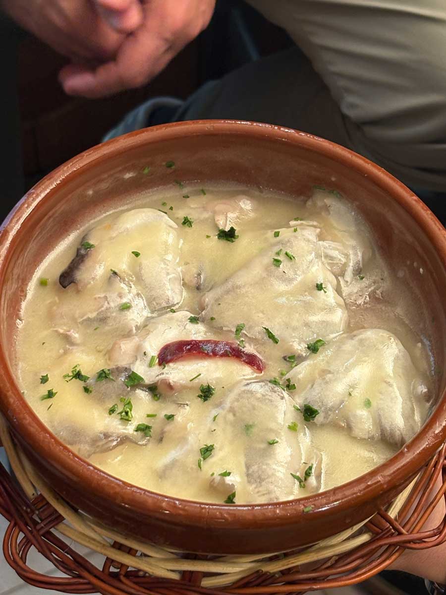 Među najboljim zalogajima su bile padron papričice koje u Ganbari nisu ljute i serviraju ih sa zdravom dozom krupne soli. Kapelunge su bile izrazito fine i stručno napravljene s nešto tvrđom teksturom. Probali smo kokotxas s pil pil umakom. Kokotxas, obrazi bakalara, neutralnog su okusa ali zanimljive teksture, pil pil umak dao im je karakter i eleganciju.