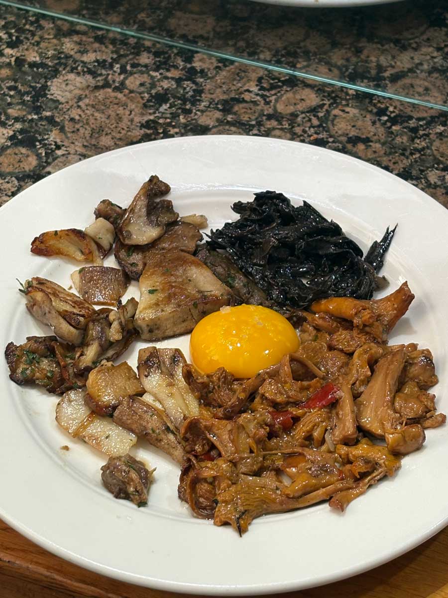 Jednom kad uđete u Ganbaru i probate nekoliko njihovih najpoznatijih jela, jasno je da vrijedi čekati. Brzinski ručak, na kojem smo bili sa nekoliko najpoznatijih hrvatskih chefova, počeli smo s Ganbarinim potpisnim jelom od gljiva, foie gras i žumanjka. Jelo je zaista slasno. Ganbara se posebno ponosi svojim gljivama, koje su izložene na šanku i izgledaju kao atraktivna dekoracija. Lisnato tijesto s rakovicom je bilo zamamno i ukusno, dok su kroketi s jamonom ipak bili razočaravajući, zbog previše bechamela.