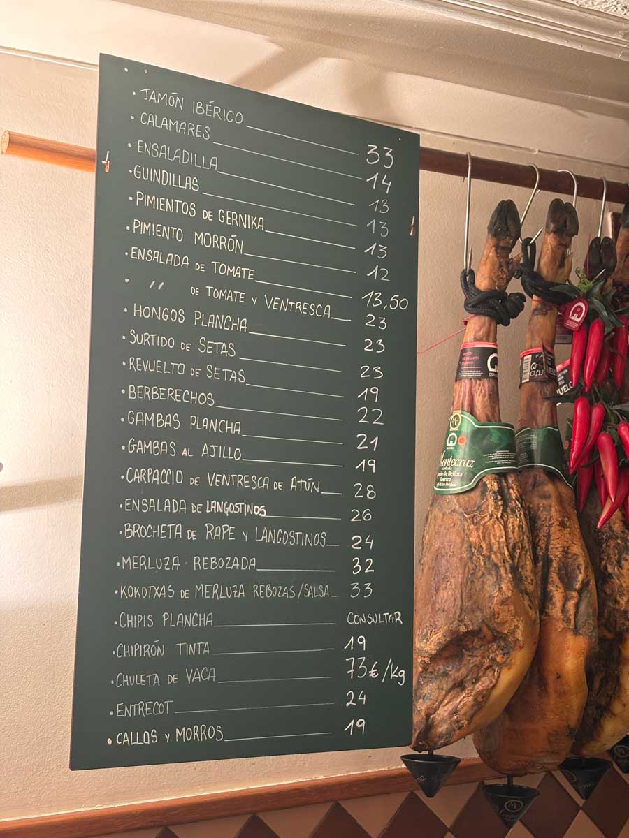 Ispred gotovo nijednog pintxos bara nismo vidjeli redove kao ispred Ganbare. Za vrijeme ručka smo čekali otprilike četrdesetak minuta na ulazak i mjesta za šankom. Pintxos barovi rade s brzim obrtajem, gosti pojedu samo dva ili tri zalogaja, popiju čašu vina ili piva, pa četrdesetak minuta čekati na ulazu može biti čitava vječnost.