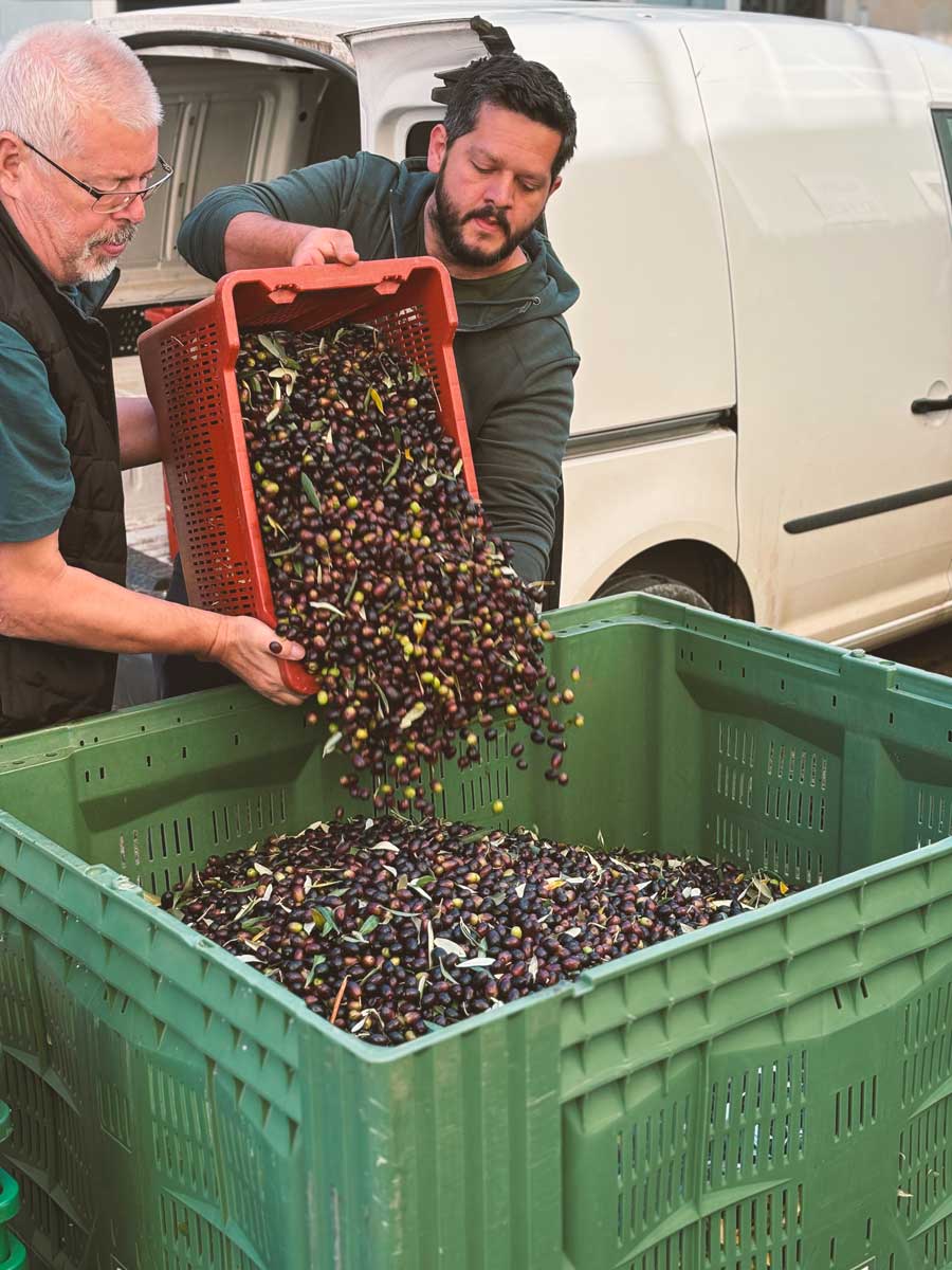 Vodnjanska je Uljara u ovo doba godine napad na sva osjetila. Buče strojevi za ulje, dolaze kombiji i automobili, viličari razvoze kasune s maslinama, u tankove curi svježe, neonski zeleno mlado maslinovo ulje od kojega miriše cijela ulica. U uljari smo, naravno, zatekli i legendu Edija Družetića, najvećeg istarskog stručnjaka za masline i glavnog oleologa Terra Eno Olee, koji svake godine osobno vodi ovu hektičnu operaciju, udubljen u vage, papire i masline, bez puno vremena za razgovor s posjetiteljima.