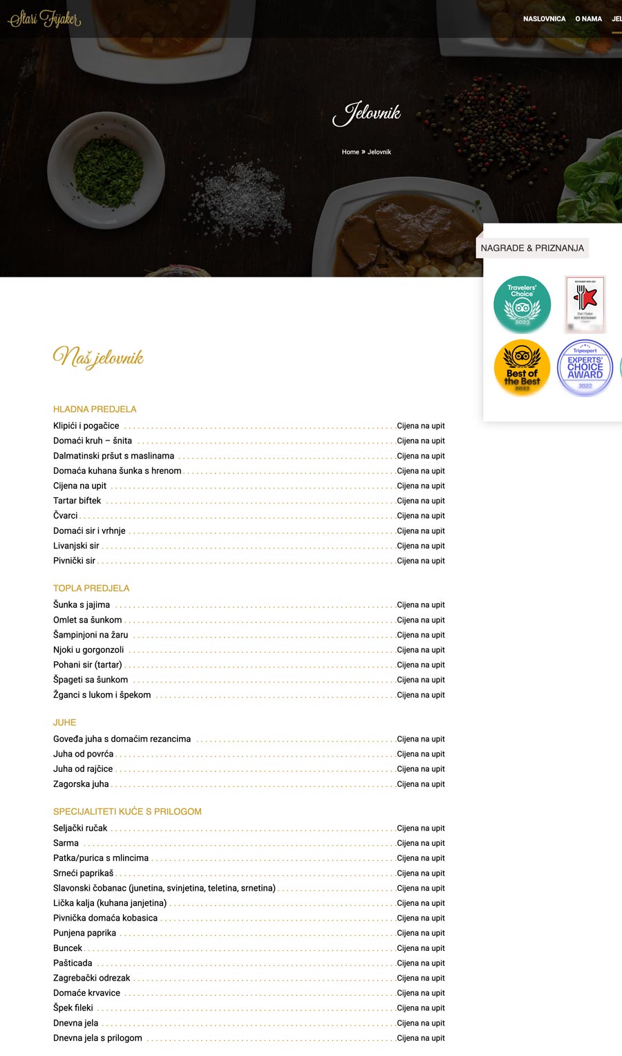 Otišli smo na Fijakerovu web stranicu da pogledamo aktualni jelovnik, koji izgleda kao da je prepisan iz zagrebačkih državnih restorana od prije pola stoljeća. Što je manji problem. Veći je problem što uz svako od četrdesetak jela piše, doslovno, cijena na upit.