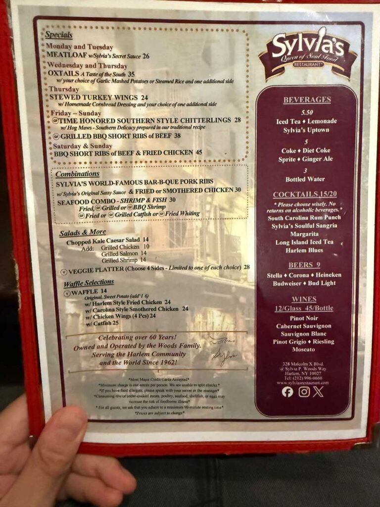 Od svih newyorških institucija koje sam obišao, Sylvia’s mi je najdraže mjesto. To je onaj tip restorana u kojem hospitality nije floskula nego način života. Ljudi ondje stvarno čine sve da se osjećate dobrodošlo. Ne čudi me gužva na vratima, ni stotine pozitivnih recenzija, ni fotografije slavnih gostiju koji tamo jedu kao obični smrtnici. A cijena? U gradu u kojem sendvič zna koštati 40 dolara, obilan ručak za dvoje u Sylvia’s – s pićem i desertom – 115 USD. Najbolja vrijednost za novac u New Yorku, bez konkurencije. Sylvia’s nije samo restoran. To je podsjetnik da se najbolja hrana kuha s dušom, a poslužuje s osmijehom.