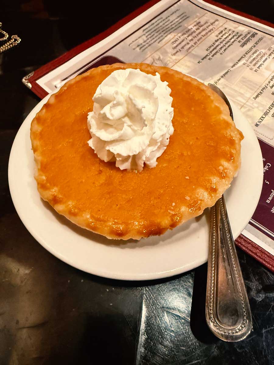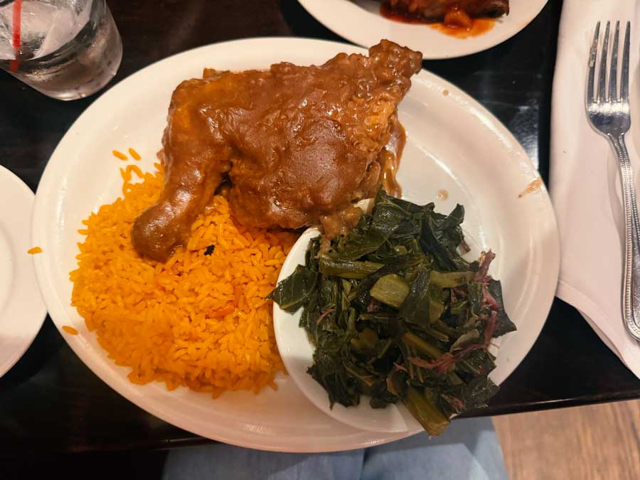 Naručili smo piletinu na dva načina – pečenu i prženu – zatim collard greens (raštiku), grah, kukuruzni kruh, BBQ ribs, pržene kozice, mac’n’cheese I rižu. Previše, užasno previše. Ukratko: kolekciju klasika koja definira soul food. Sve je stiglo brzo, kipuće, mirisno i nevjerojatno ukusno. Jela su jednostavna, ali puna karaktera i autentična. Za kraj sam, potpuno nepotrebno, ali iz čiste znatiželje (i pohlepe), naručio sweet potato pie. I, naravno – pojeo sve. Bio sam grozno prejeden, ali i presretan.