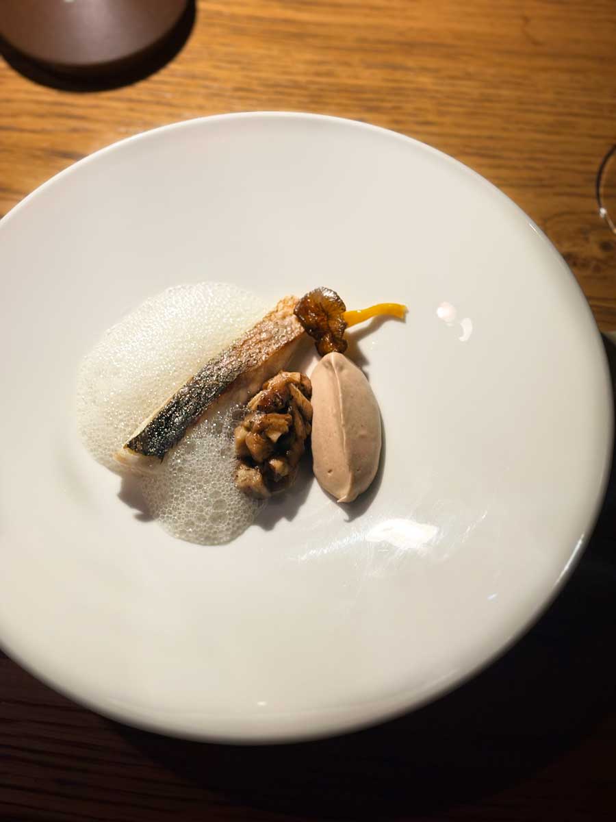 Glavno jelo je vrijedno dolaska u Mošćeničku Dragu. File divljeg brancina pripremljen je točno u sekundu,meso je sočno i elegantno, kožica hrskava a riba poslužena s raznim formama gljiva. Chef Vunić postaje kvarnerski Hrvoje Zirojević.