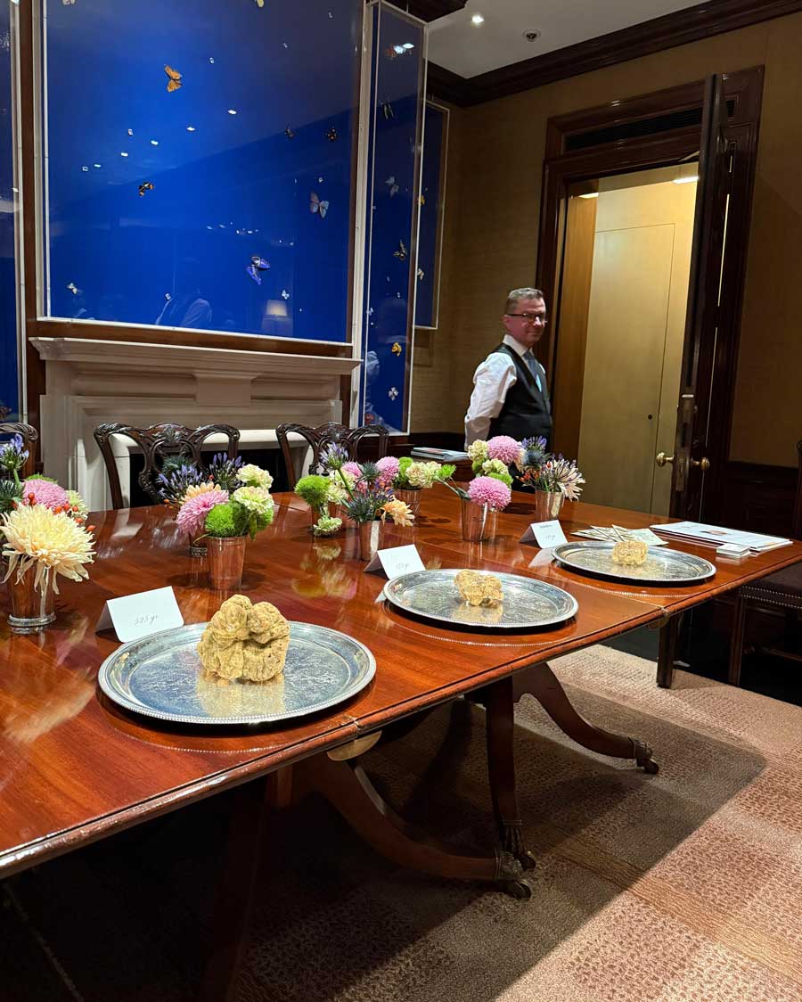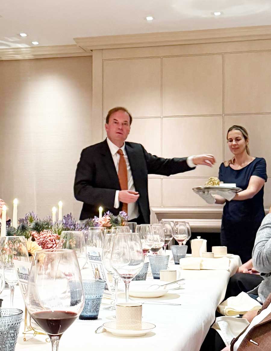 Aukciju je vodio Harry Dalmeny, grof od Roseberyja, karizmatični počasni predsjednik kuće Sotheby’s za Veliku Britaniju i Irsku. Na aukciju su mogli doći samo pozvani kupci, dvadesetak kolekcionara, konosera i članova londonske visoke društvene scene. U sklopu aukcije u Sotheby’su je pripređena i večera s istarskim bijelim tartufima.
