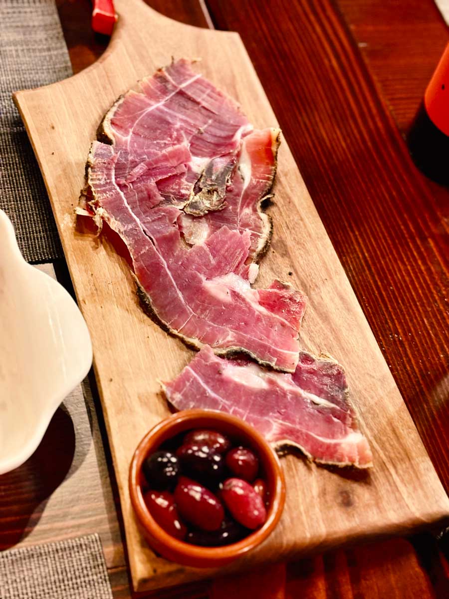 Vlasnici osobno vode brigu o gostima i stvaraju prijateljski odnos koji je uvijek profesionalan, što nije najlakše postići. Hrana je dobra do vrlo dobra, s nekim odličnim stavkama. U Kolinasima smo probali nekoliko jela i na kraju večeri zaključili da bi se vrlo rado vratili. Večeru smo započeli ručno rezanim pršutom koji je bio ukusan, ali ipak možda malo predebelo rezan za naš ukus. Frigani škripavac je strane bio vrlo dobar i lijepo pripremljen.