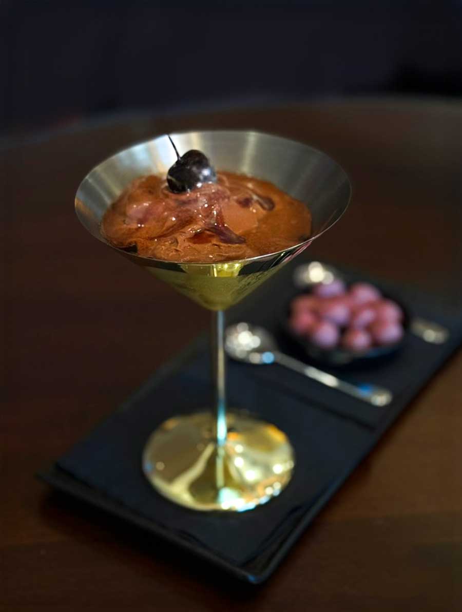 Esplanadini zimski sladoledni kokteli ostavili su nas bez ijednog razloga za ironiju, prigovore i primjedbe o tome kako se sve ovo može napraviti bolje. Oni su naprosto odlični bez ostatka. Esplanadina posebna karta pod nazivom Artisan Gelato Perfection sastoji se od pet sladoleda s pićima. Dražesni affogato bazira se na sladoledu od bourbon vanilije, espressu i jednom neobičnom, vrlo gorkom niskonakladnom likeru od kave. Gelato od pistacija iz Brontea odlično se složio s Badelovim likerom Bajadera. Čokoladni sladoled fino se snašao u društvu višnjina likera Amarena i bombona od višnje i badema.
