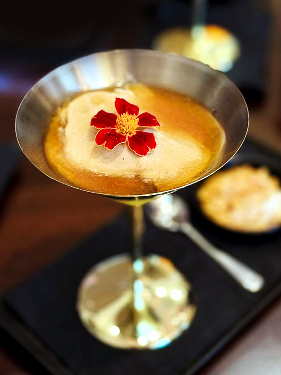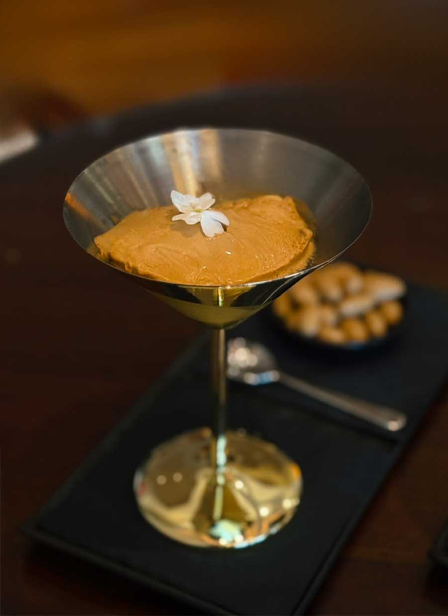 A zatim su na red došle dvije apsolutno spektakularne kombinacije koje trebaju ući u udžbenike hrvatske miksologije i slastičarstva. Gelato od slanog karamela, s optimalnim balansom slanog i slatkog, poslužen je s umjereno, gotovo delikatno zadimljenim mezcalom. Mezcal obožava skoro sve što je slano, a slani karamel voli dim. I tako je nastao sladoledni koktel kojeg ćemo u idućih nekoliko mjeseci često naručivati. I dražeje od slane karamele, koje se serviraju uz koktel, toliko su šarmantne da zaboravite brojati kalorije. Kad smo pomislili da ne može bolje, Esplanadin bar, njegov šef i Hyggis još su nas malo više impresionirali.