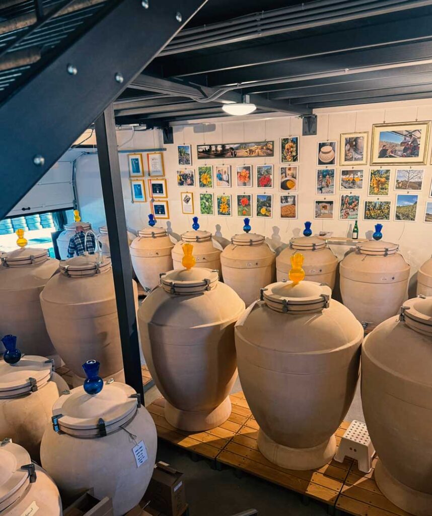 Zatim smo probali nekoliko uzoraka iz amfora iz ovogodišnje berbe, koja se odvijala u rujnu. Osim jednog uzorka, u kojem se osjetila volatilna kiselina, sva mlada vina impresionirala su nas zrelošću voća, dobrim kiselinama i jakim karakterom u posve ranoj fazi nastanka. Sylvmanni iz 2025. mogli bi postati velika svjetska vina. Silvija Jermanna pažljivo pratimo dvadesetak godina, otkako smo sa Željkom Bročilovićem Carlosom prvi put posjetili njegovu staru talijansku vinariju.