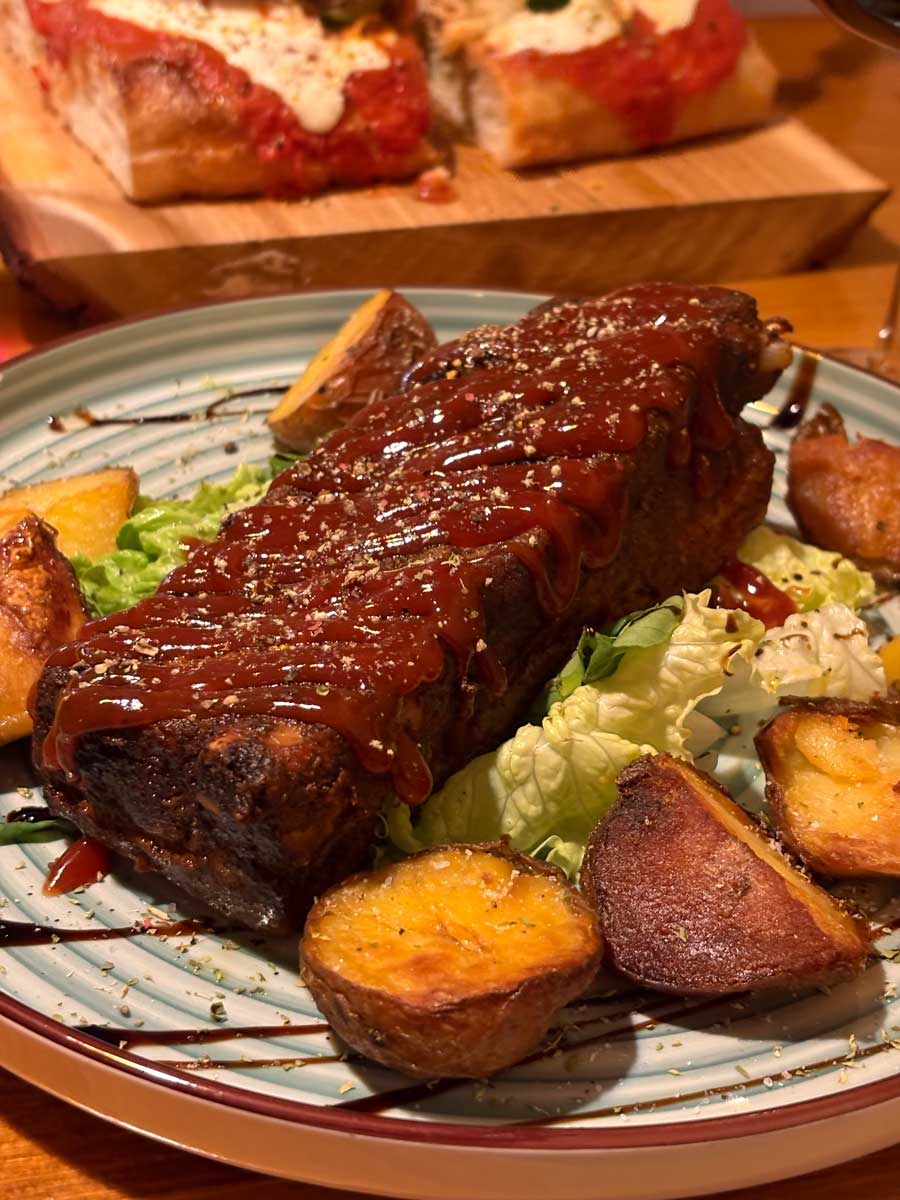 Furuna nudi pizze s janjetinom, gljivama i nekoliko klasika. Naša pizza s porchettom je bila gotovo odlična. Porchetta je bila izvrsno začinjena, a pečena tikvica dobar dodatak. Drugo jelo je ostavilo još bolji dojam. Rebarca su očigledni trend u zadnje vrijeme, a Furuna se u jelovniku hvali da njihova rebarca nisu obična i prolaze nekoliko dugih termičkih obrada. Naručili smo ih ugodno se iznenadili. Meso je bilo sočno ali ne premasno, opet jako dobro začinjeno, dok je BBQ umak bolji od ostatka jer nije ostavio dojam kao da jedemo rafinirani šećer.