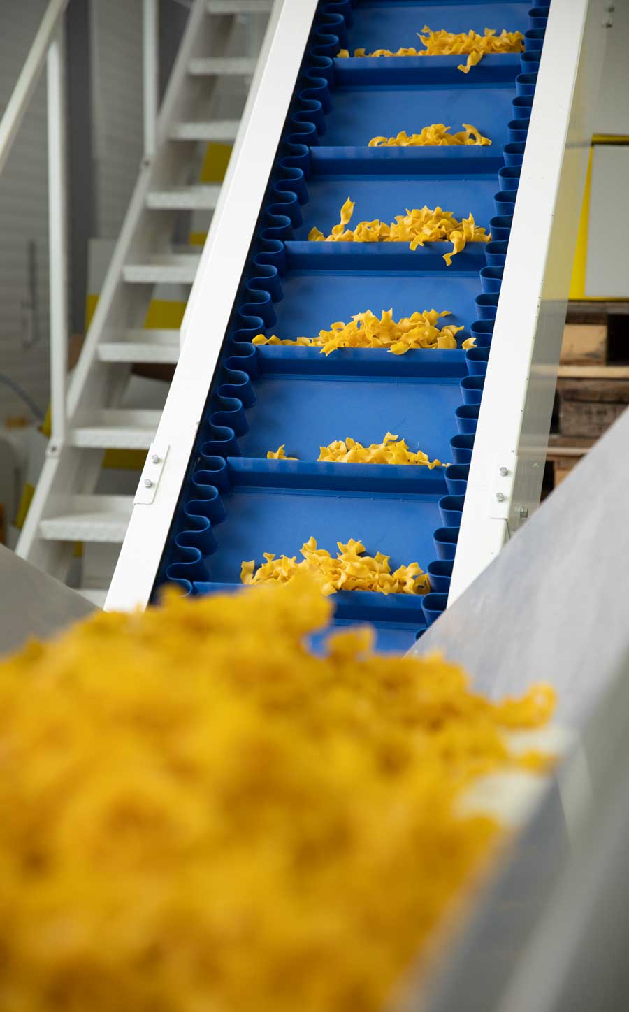 Gospođa Dragica, šefica proizvodnje u Koledi, u utorak ujutro nadzirala je valove tjestenine koji su izlazili iz modernih strojeva za tjesteninu, pa je tjesteninu slagala na palete, a palete smještala jednu na drugu. Ovaj zadnji dio posla uskoro će se dodatno automatizirati. Ali, Koleda zbog djelomične robotizacije neće smanjiti broj zaposlenih. Naprotiv, Antun Kamenjašević, vlasnik najambicioznije hrvatske tvornice tjestenine, rekao nam je da uskoro planiraju uvesti treću smjenu.