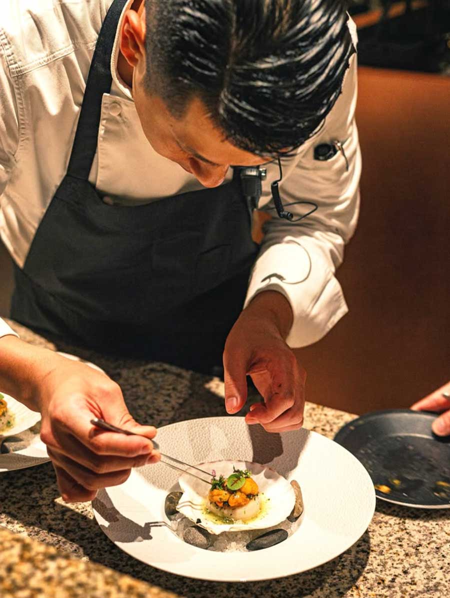 Sistem u Nagatacho Ohka je da svaku večeru pred gostima kuhaju trojica gostujućih kuhara. Smiju kuhati samo kuhari iz restorana s Michelinovim zvjezdicama. Kad chefa za svojim stolom pitala gdje inače kuha, kratko je i sramežljivo odgovorio da je Japanac, a zanat je brusio u Portugalu u restoranu s dvije Michelinove zvjezdice. Ni drugi chefovi nisu nam se predstavili pa ne znamo odakle je koji došao. I to smo svrstali u rubriku tajnovitosti mjesta, ali kad sada razmišljam o tome, bio je zaista red da čujemo tko nam kuha i iz kojeg restorana dolazi, ako su naši kuhari uopće i smjeli raditi u Nagatacho Ohka.