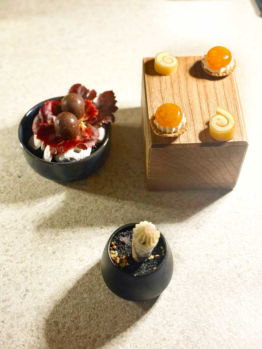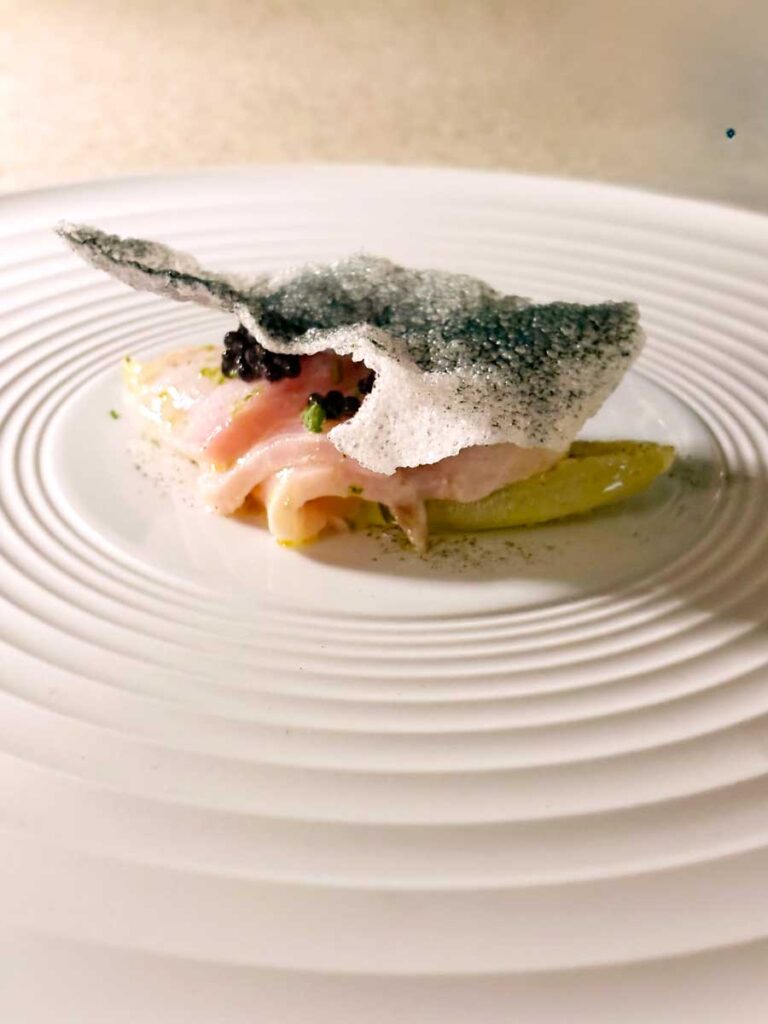 U večeri prepunoj velikih jela, najviše nas je oduševio crni bakalar premazan miso umakom. Očito inspirirani Nobuovim čuvenim fusion jelom black cod, chefovi Metullio i De Pra dali su svoj pečat s keljom, pinjolima, grožđicama i daikonom. Glavno jelo, koje je pripremio chef Hrastovčak, spojilo je janjetinu i morske trave, naizgled smjelo ali zapravo logično, i s uglavnom dobrim rezultatima, primarno zbog odlične termičke obrade mesa. Preddesert pastry chefice Dragane Kovačević je izvrsno najavio glavni desert Al Sud s bademima, origanom, kaparima i limunom.