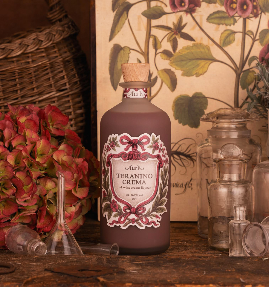 Teranino Crema je mješavina klasičnog Aurinog teranina obogaćena s puno cimeta i baršunastom kremom baziranom na slatkom vrhnju, s još nekoliko dodataka. Rezultat je liker koji povezuje teranove arome i okuse tamnog voća s ultrakomercijalnom kremastom teksturom: gotovo kao da pijete teranino sa šlagom i cimetom.