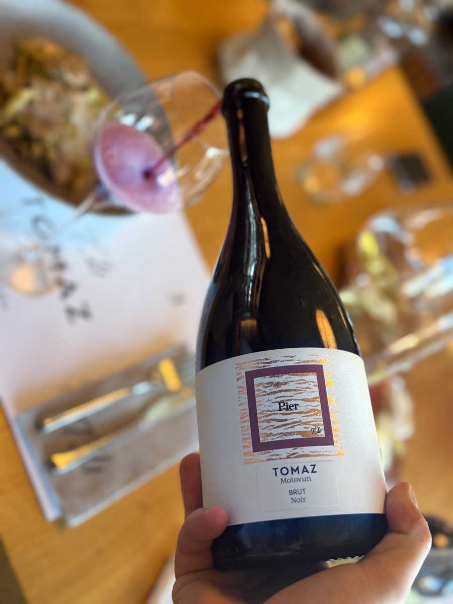Prosinački tasting u proljetnom ambijentu velikog podruma podno Motovuna počeli smo linijom klasičnih pjenušaca Pier vinificiranih isključivo od terana, što je logična odluka jer teran osigurava dovoljno visoke kiseline neophodne za proizvodnju prirodnog pjenušca. Najbolji je dojam ostavio Pier Rosé iz 2020. godine, vibrantan, kremozan, još prilično voćan, s privlačnom bojom dimljenog lososa.