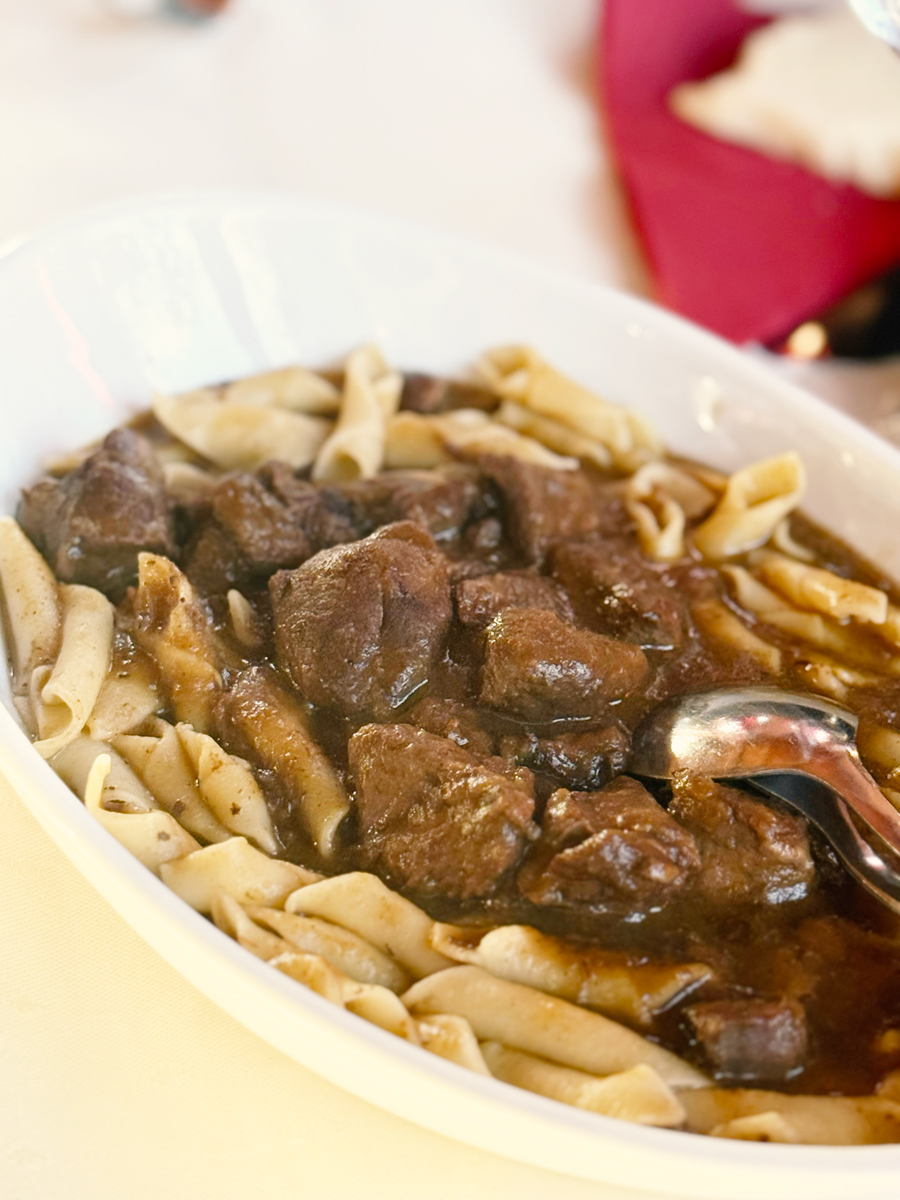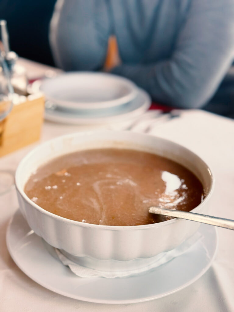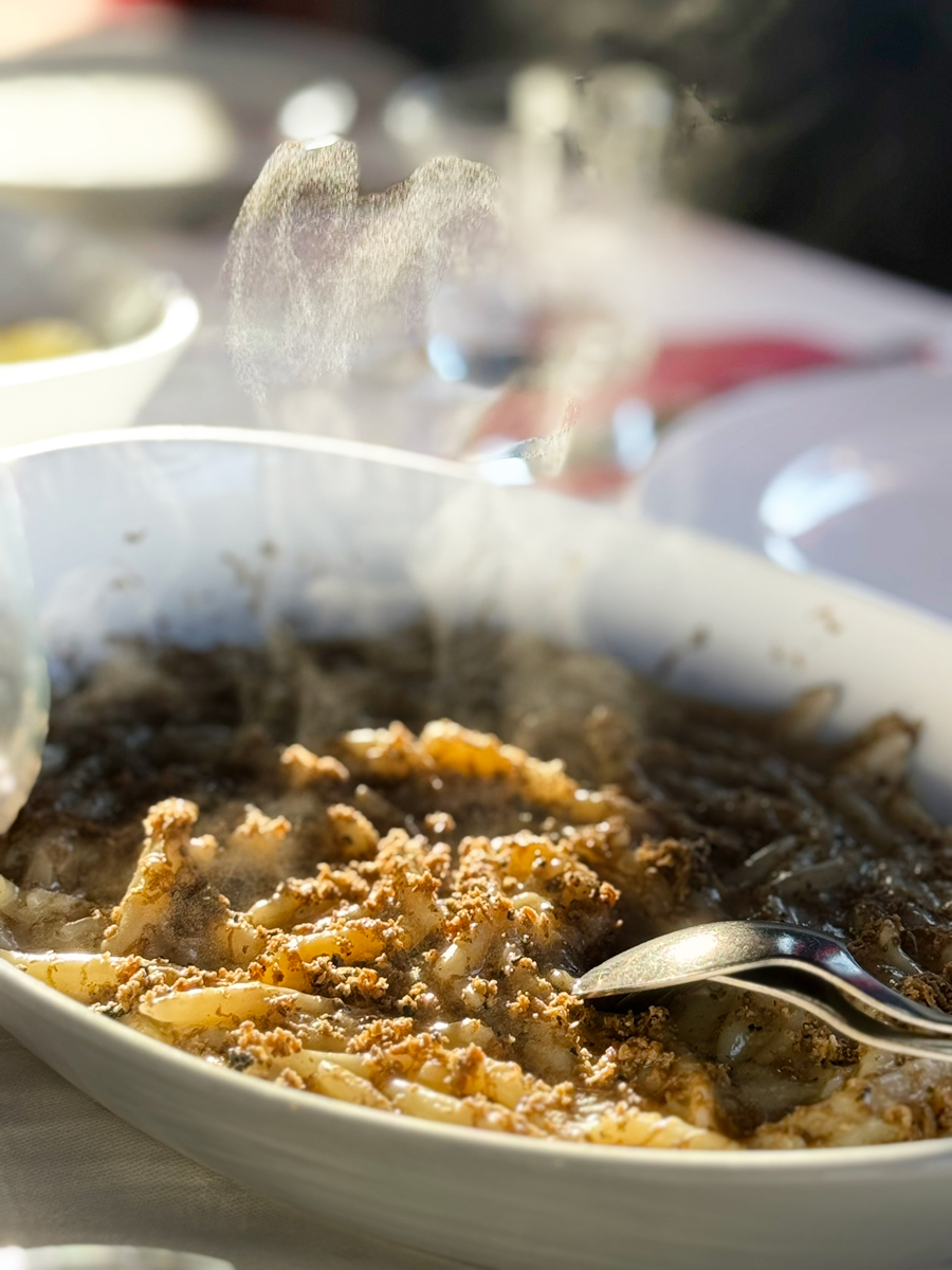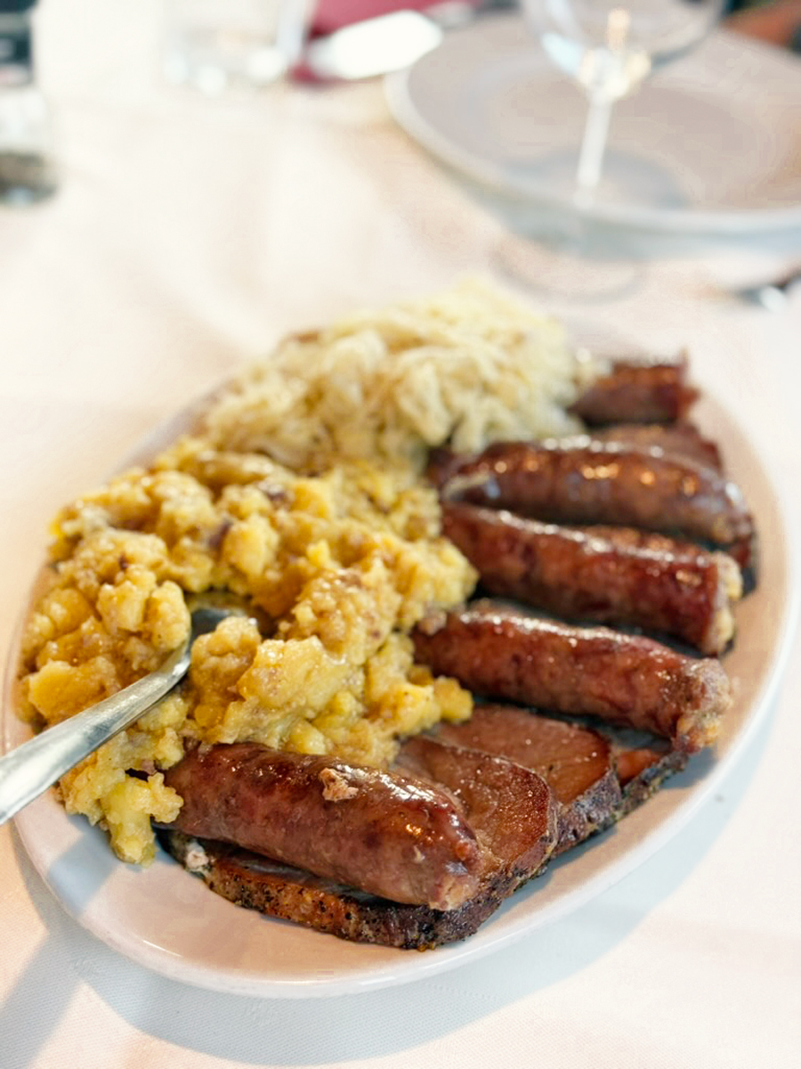 Kobasice, ombolo i izvrstan restani krumpir s kiselim zeljem pokazuju kako treba izgledati pošteni seoski ručak u Istri pred Božić. U Agroturizmu Štefanić, s lijepim pogledima na obližnja brda, pili smo još vrlo svježu Malvaziju iz 2024., vibrantnu Bianca Croce iz 2023. i ugodni Teran s glasovitog položaja Šublenta iz 2022. kojem, razumljivo, treba još vremena u boci.