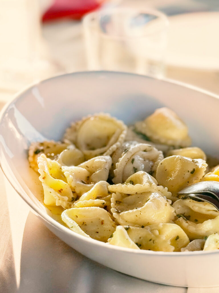 Poslije tastinga u Kaldiru, Valente su nas odvele na ručak u Agroturizam Štefanić, u zaseoku Štefanići gdje je rođena gospođa Valenta. Agroturizam Štefanić, utemeljen prije točno četvrt stoljeća, primjer je poštenog i kompetentnog odnosa prema jednostavnoj lokalnoj hrani. Ručali smo gustu maneštru s ječmom, odlične fuže sa šugom od srnetine, fine pljukance s tartufima i još ukusnije raviole sa sirom i kaduljom.