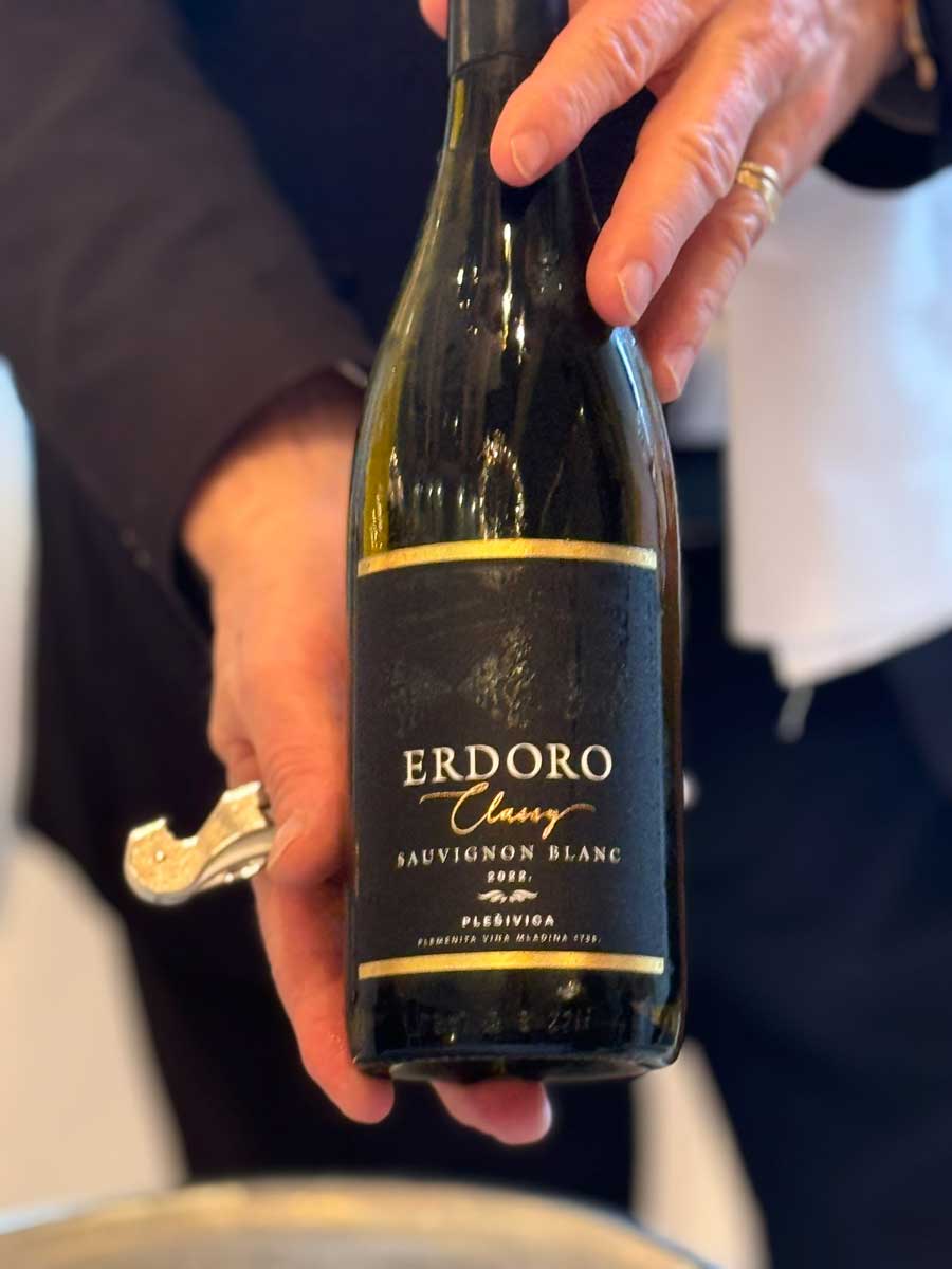 Prije ručka smo popili butelju Ruinartova Blanc de Blancsa, a uz hranu bocu Erdoro Sauvignona Classy, koji se izvrsno složio s kamenicama. Uz janjetinu smo pili odlični tribidrag po izboru Stjepana Okuna, profesora visokog restoranskog servisa. Uz sireve smo probali kremasti, vibrantni Čmrečnjakov Pušipel Mađerka. Ručak smo završili sjajnim Hyggis gelatom od slanog karamela u mezcalu.