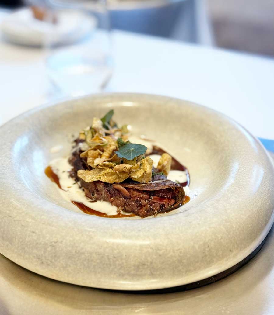 Nastavili smo s fileom kovača u beurre blancu od algi, fileom romba na kremi od pečenog celera i genijalnom, doslovno genijalnom konfitiranom janjetinom u palačinki od crne leće. Esplanadina chefica Ana Grgić Tomić priprema definitivno najukusniju janjetinu u Hrvatskoj. A siroti božićni zatvorenik Željko Kerum svojedobno je naručivao da mu u Esplanadu donose janjetinu iz Trnjanke. Kad čovjek ne zna, uistinu ne zna.