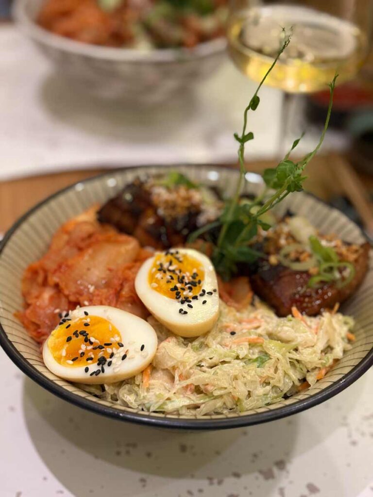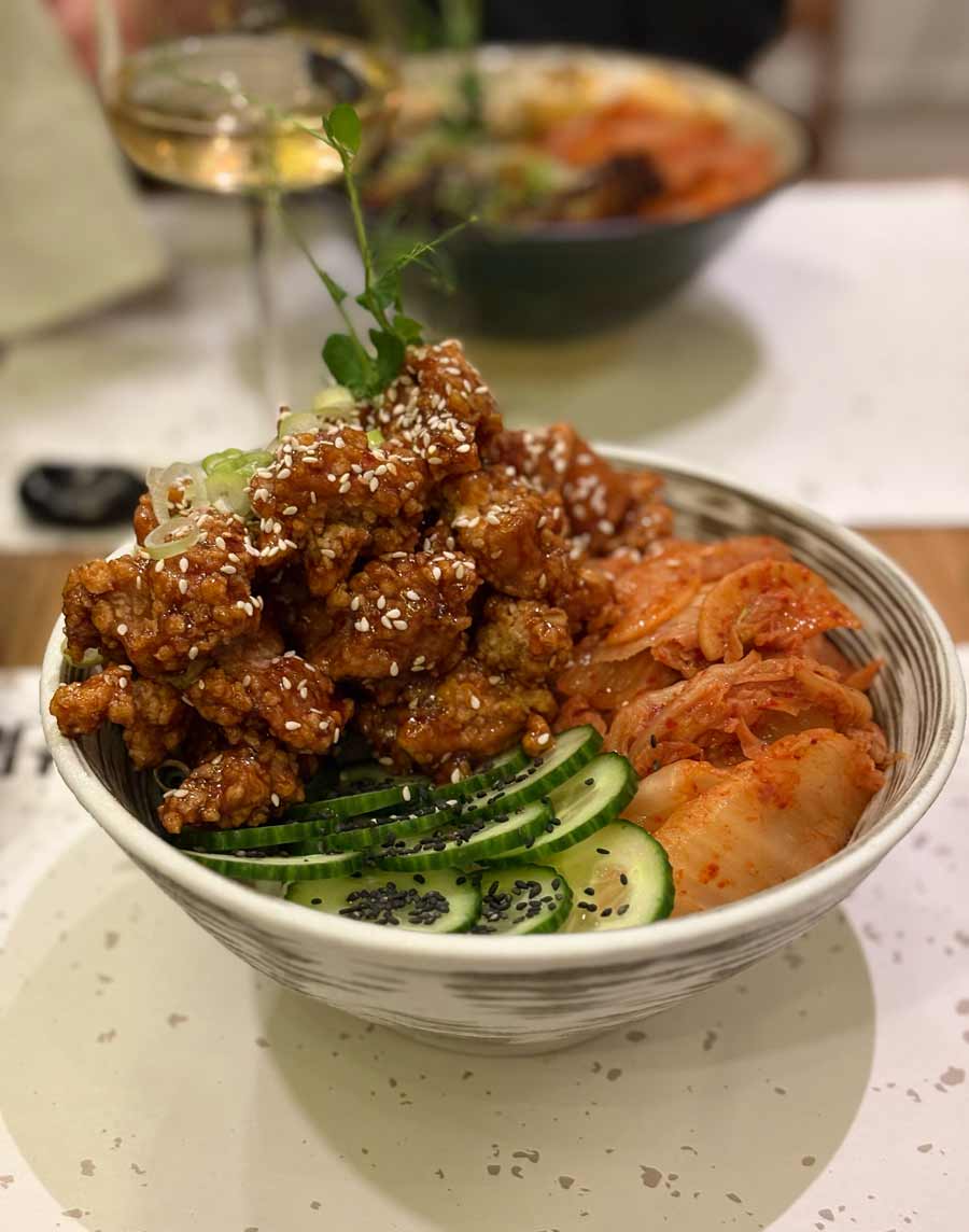 Tajlandske gyoze su bile pune pametno ukomponiranih kiselina, dok su ogromne spring rolice punjene konfitiranim pačjim zabatkom bile apsolutni pobjednik u predjelima. U Kavani kažu da rade sami sve što se može, od bao bunsa do različitih umaka i focaccie za brunch. Za glavna jela smo naručili kung pao sa svinjetinom, kimchijem i coleslaw salatom i korejsku prženu piletinu. Kung pao je bio ukusan, s puno dobro pečene svinjetine, kimchi vrlo dobar, a jelo dovoljno veliko za dvoje umjereno gladnih ljudi. Korejska piletina bila je još bolja.