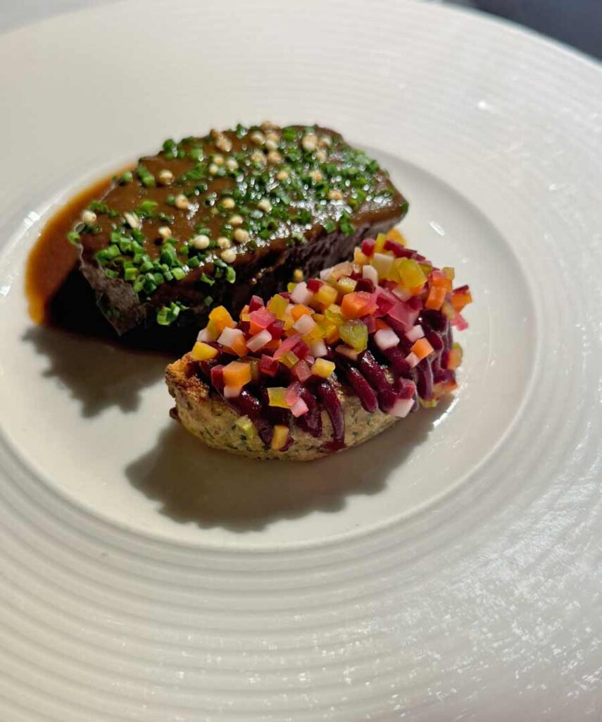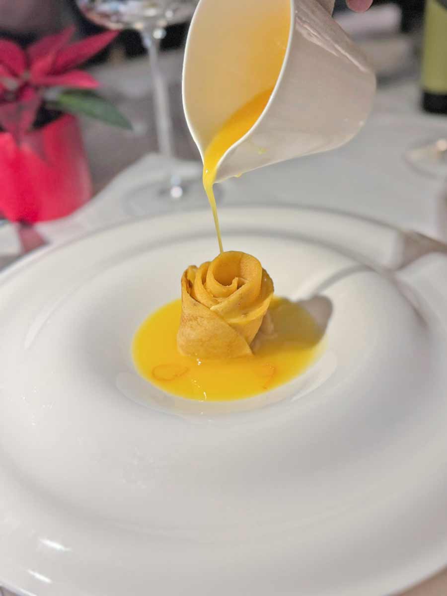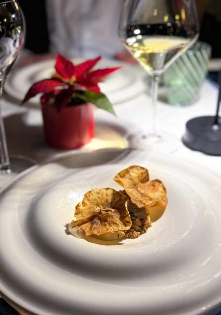 Na sedmosljednom meniju najviše su nas impresionirali file romba u kremastom kiselkastom umaku, jakovske kapice s lješnjakom, celerom i crnim tartufom i ravioli punjeni kvarnerskim škampima i kozicama s bisqueom i kremom od crnog češnjaka. Klasik Plavog podruma, quenelle od gusje jetre sa škampima, u novoj je verziji obogaćen gelom i chutneyem od buče.