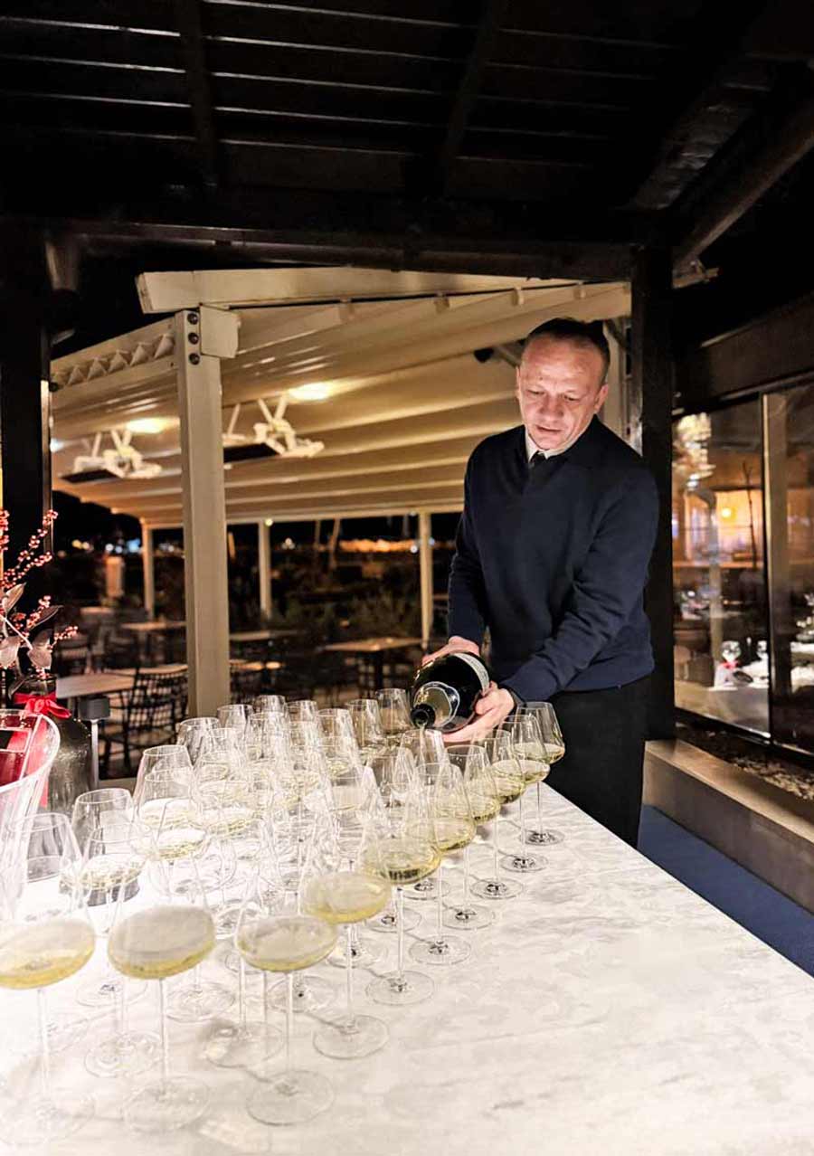 U Yacht Clubu sreli smo Sandu i Nina Duspera, prvoborce distribucije velikih svjetskih vina u Hrvatskoj. Gospodin Dusper izabrao je dva senzacionalna vina iz portfolija njegovog Vino Tradea, koje Yacht Club uredno drži na karti po vrlo decentnim cijenama s obzirom na njihovu klasu. Radilo se o odličnom, kremastom i vibrantnom Drouhinovom Corton-Charlemagneu iz 2019. i gigantskoj Insigniji Josepha Phelpsa iz 2018.
