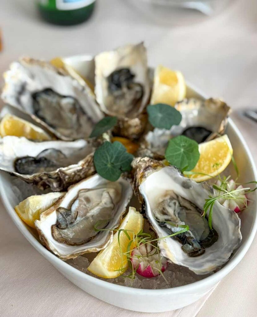 Jučer smo pak ručali u Yacht Clubu, čija je riblja vitrina bila puna velikih kovača, divljih orada i škrpina. Prije oveće škrpine s gradela uživali smo u finim malim predjelima: osobito su ukusni bili inćuni i retro kozice na umaku Aurora. Kamenice su također ostavile sjajan dojam.