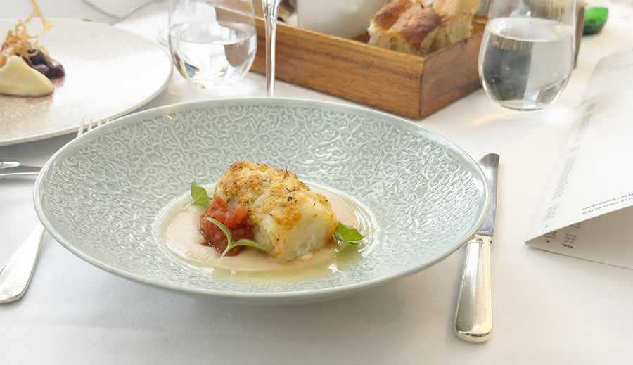 Zapečeni file bakalara s grahom, čilijem i juhom od bakalara bio je gotovo podjednako fin kao i malo jelenje remek-djelo. Šteta je što Hrvati tek usputno jedu svježi bakalar, koji spada među europske bijele ribe s najefektnijom teksturom (istovremeno je vrlo čvrst i pahuljast).