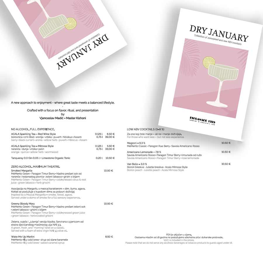 “No & Low Mindful Movement nastao je kao odgovor na novu kulturu izlazaka. Vidimo da sve više gostiju želi ostati prisutno, povezano i uživati u izlasku bez obzira na količinu alkohola u čaši,” objašnjava Maksan. “Ovo nije pokret protiv alkohola, već poziv na druženje, uživanje i svjesnost u novom obliku.” To se vidi i u trajanju programa, od početka siječnja do sredine ožujka, u što dakako ulaze i Dry January i Veganuary, ali više kao pojmovi koji sugeriraju svjesnije izbore nego asketski život. Hedonizam je i dalje glavna filozofija.