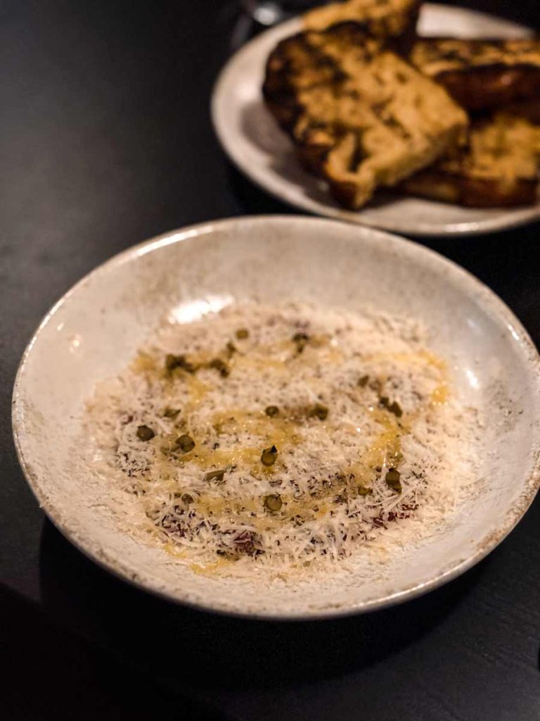 Bekal je dobio i puno bolju vinsku kartu i vinski servis, što mu je akutno trebalo. I dalje dominiraju prirodna vina, samo je izbor sada čišći i profesionalniji zahvaljujući Salopekovoj kompetenciji. Najvažnije je ipak to da je Bekal nastavio kuhati uzbudljivo i kreativno. Bekalov fiksni petoslijedni jelovnik otvara se s njihovim već poznatim poznatim, ekspertno začinjenim tartar biftekom.