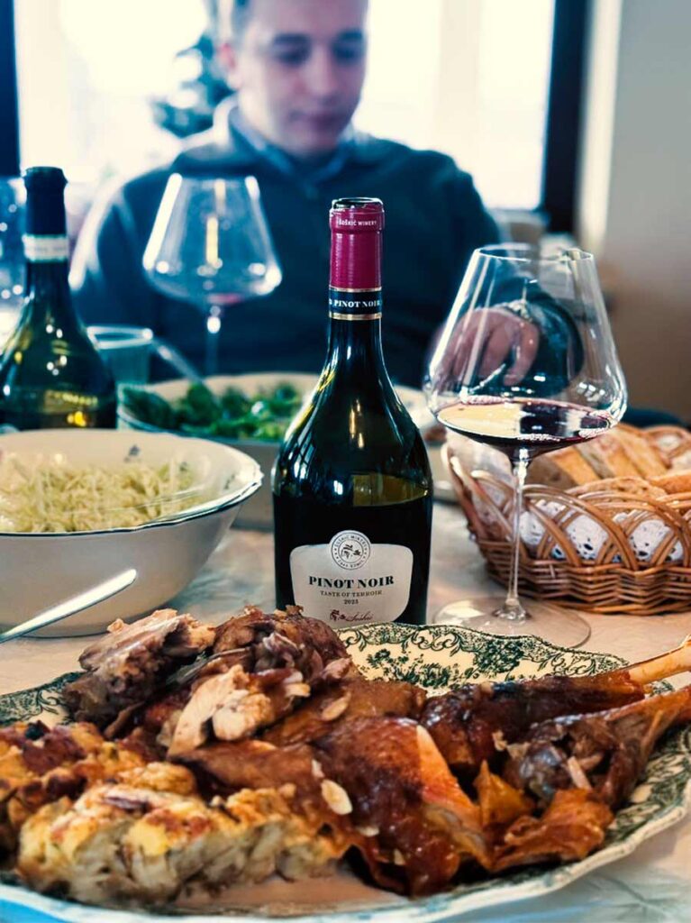 Prije velikih vina, koja uključuju i mekani ali bogati Haiku 5 napravljen od rizlinga, manzonija, chardonnaya, sivog pinota i muškata, koji je lani osvojio Decanterovo srebro s 94 boda, probali smo niz standardnih vina iz novijih Šoškićevih berbi, među kojima je najbolji dojam ostavio sauvignon iz inoksa iz 2025., bitno svježiji od ranijih Šoškićevih sauvignona. Crni pinot iz 2023. još je previše voćan, no pinot noir iz magnuma iz 2017. pokazuje da Šoškićevi crni pinoti mogu imati ozbiljan potencijal.