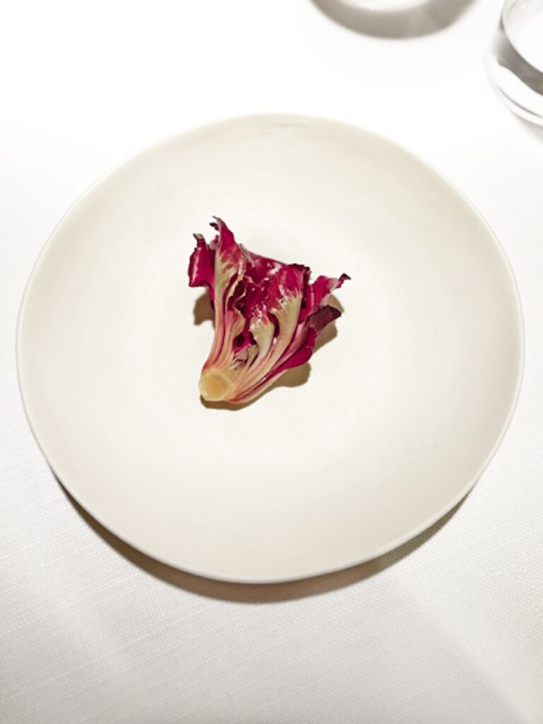 Ovo jelo nepretencioznog imena spada među najkompleksnije stvari ikad skuhane u Hrvatskoj. Pečeno lišće s kapelungom i bosiljkom sadrži nevjerojatnih 48 sastojaka, a sama krema od curryja na kapelungama radi se od petnaestak začina. Rezultat je vibrantan, električan, začudan i pokazuje da se u Rovinju može prodavati međunarodno relevantna avangardna kuhinja.