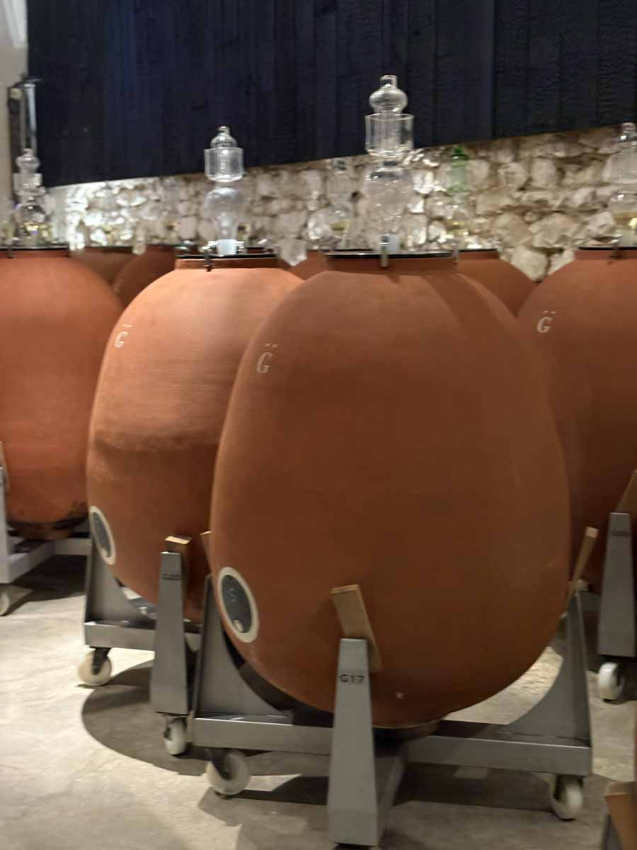Henri Giraud dio vina fermentira i u jajima od pješčenjaka, što je rezultat višegodišnjeg eksperimentiranja s raznim materijalima. Tu su i posebna keramička lica hrastovih bačvi koja nisu samo dekorativna. “Keramička lica daju nam čišće vino, manje gorčine, omogućuju nam veću preciznost i termoregulaciju svake bačve pojedinačno umjesto cijelog podruma. Dakako, keramička lica su još u ekperimentalnoj fazi, ali jako smo zadovoljni rezultatima,” objasnio nam je jedan od predstavnika kuće.