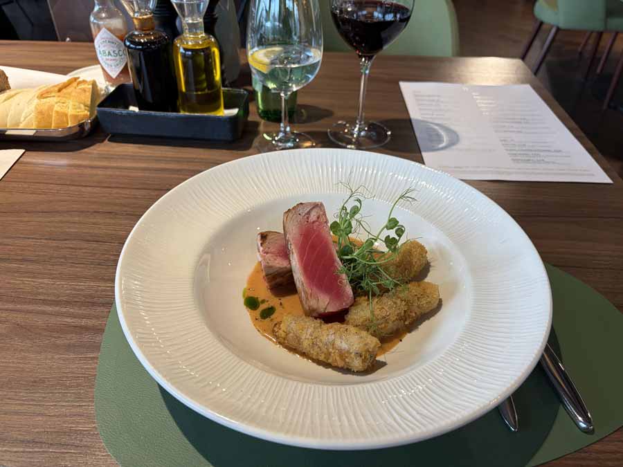 Filet tune, u čijem se umaku ipak premalo osjetio yuzu, bio je upravo perfektno, nježno, sasvim blago termički obrađen, ružičasto crven, putrast, mekan i sočan. Kroketi su također bili izvrsni.