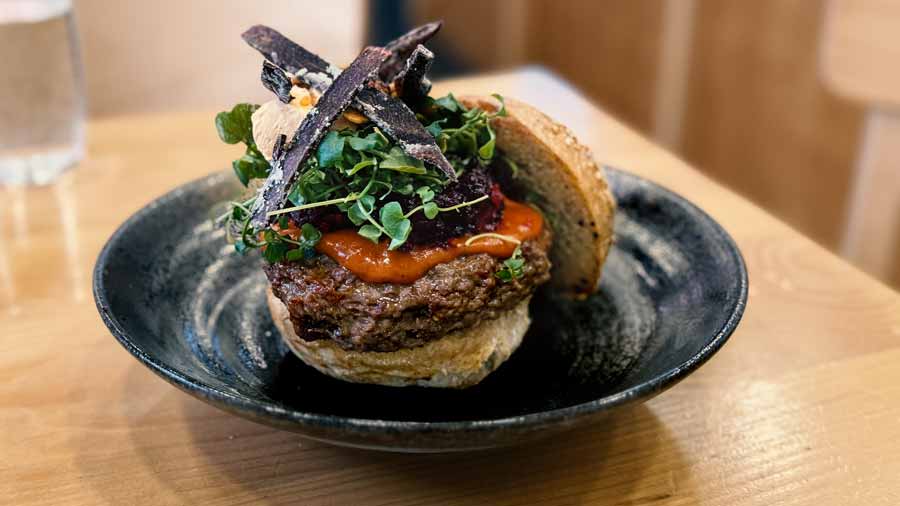 Najveći Salov novi hit zasigurno će biti burger od govedine odležane s kojijem, koji poslužuju u svom briošu, s tartarom od cikle, prženim batatom i salatom iz biodinamičkih vrtova koji uzgajaju povrće za NAV i Salo. Golemi burger (200-gramska pljeskavica) jedan je od najsočnijih i najukusnijih koje smo dosad jeli u Zagrebu, s duboko umamiziranim mesom i izvrsno pogođenim pikantnim umakom od kimchija i vrhnja. Veganski burger rade od žitarica, s istim prilozima.