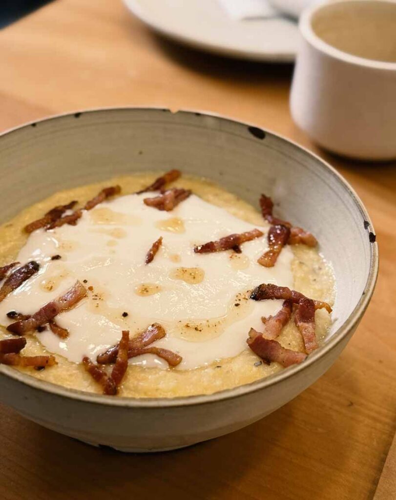 Sve što smo u srijedu jeli u Salu prštalo je svježinom, okusima i energijom. Kompleksnost i preciznost se podrazumijevaju. Novi desert, štrukli Suzette, izvrstan su primjer Šakotinog sistema. Štrukle, jedno od svojih najprodavanijih jela, Salo u slatkoj verziji radi sa sirom koji proizvode sami, karamelom napravljenim od sirutke tog istog sira i organskim narančama. U tim naizgled jednostavnim štruklima slatkoća, citrusna kiselina i slanost sira toliko su točno balansirani da vam se čini da ste u NAV-u a ne u neformalnom bistrou. Povratak jagli i french toast od debele šnite Salovog brioša s njihovim fermentiranim vrhnjem i medom s narom, pokazuju da se i najbanalniji formati mogu pretvoriti u gastronomski pamtljive momente. Sve ovo što smo nabrojili izlazi iz minijaturne Salove kuhinje s dvije indukcije, dvije male peći i troje kuhara.