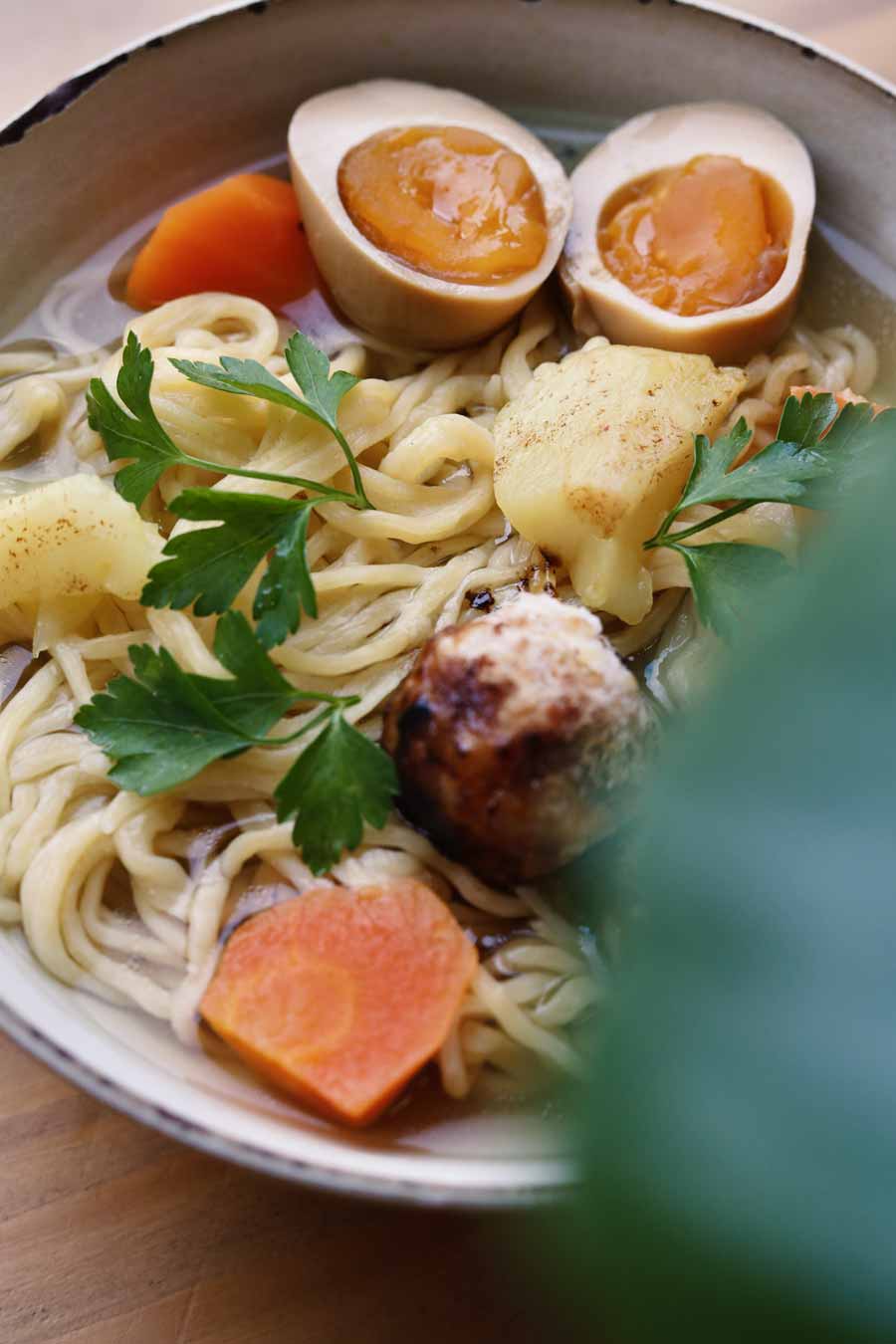 Pileća juha poslužena kao ramen, s bogatim temeljcem od domaće piletine, kuglicama od svih rezova piletine, mariniranim jajima i ramen rezancima koji se rade u Salu, okrepljujuće je ali veoma sofisticirano jelo, u porciji dovoljnoj za cijeli ručak. Na Salovu pileću ramen juhu trebalo bi kao na obveznu terensku nastavu voditi učenike kuharskih škola.