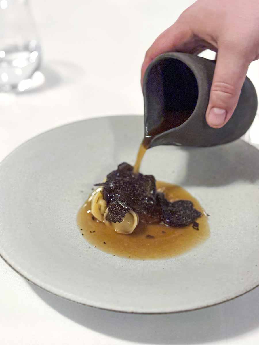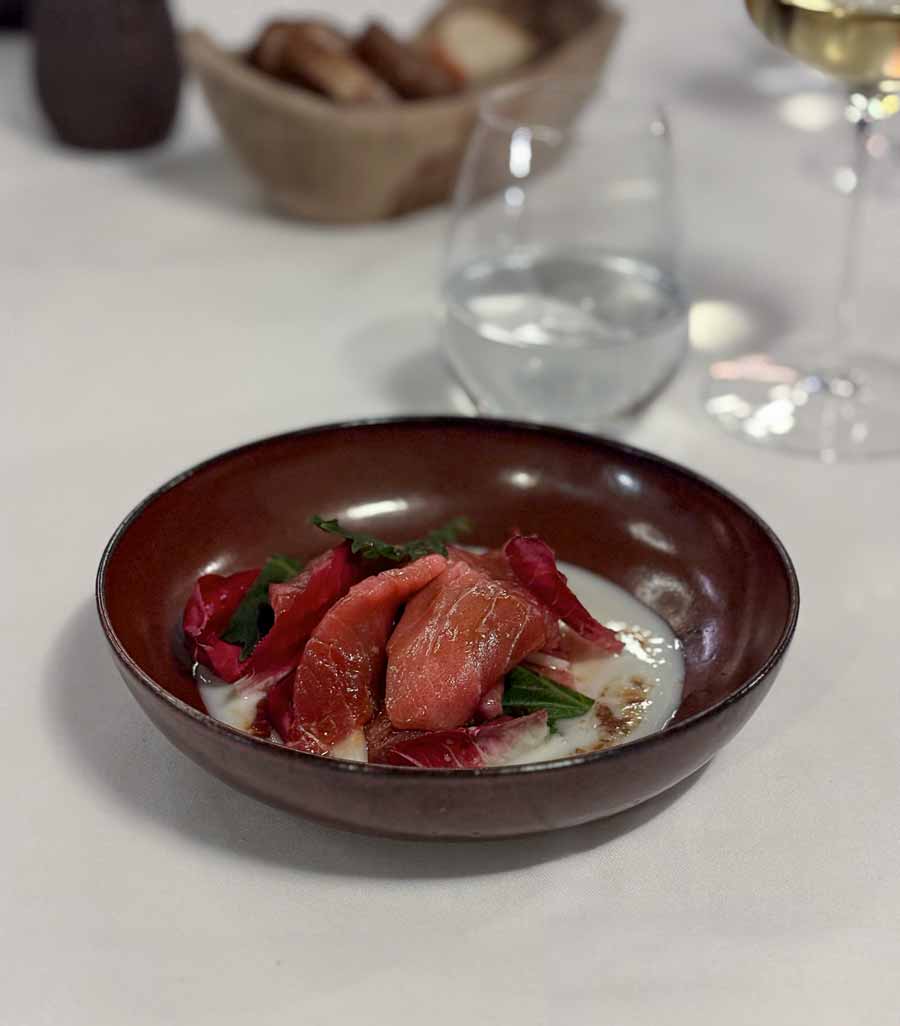 Meni je atraktivan i u svakom segmentu ima nekoliko jela koja bi trebala biti bestseleri u sljedećih nekoliko mjeseci. Večeru smo započeli slasnom masnom tunom okupanom u odličnom bademovu mlijeku, ponzu umaku i shisu. Zatim smo probali izvrsnu terinu od istarskih kobasica s pistacijama, gusjom jetrom i raznim kondimentima, od kojih nam se najviše svidjela majoneza od lješnjaka. I brioš sa svježim tartufima je bio odličan.