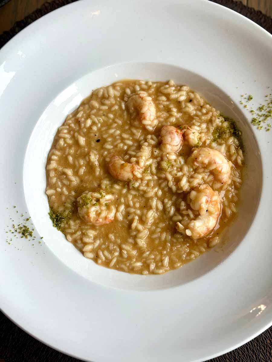 Dosljednost novog Draginog koncepta je, dakle, upitna. S jedne strane se ide na masovnost, a s druge se pokušava ponovno uvesti nešto što već dokazano nije uspijevalo. Hrana, s druge strane, ima dobrih i loših elemenata. Već smo spomenuli da su sastojci vrlo dobri. Kad smo naručili rižoto za dvoje s kvarnerskim škampima za 52 eura, upozorili su nas da ćemo ga čekati minimalno dvadesetak do 25 minuta. Upravo to želite čuti svaki put kad naručite rižoto. Za 52 eura očekivali smo veliku porciju od koje ćemo se toliko najesti da više ništa nećemo dalje htjeti naručiti. Dobili smo, međutim, light predjelo od čini nam se pola porcije po osobi. Sam rižoto je bio vrlo dobar. Škampi su bili srednje veličine, ukusni i slatki, u rižotu se osjetio pravi temeljac od škampa, a tekstura pravilno pogođena. Jedino što mu je nedostajalo za više ocjene jest kraća termička obrada. Riža je bila blago raskuhana.