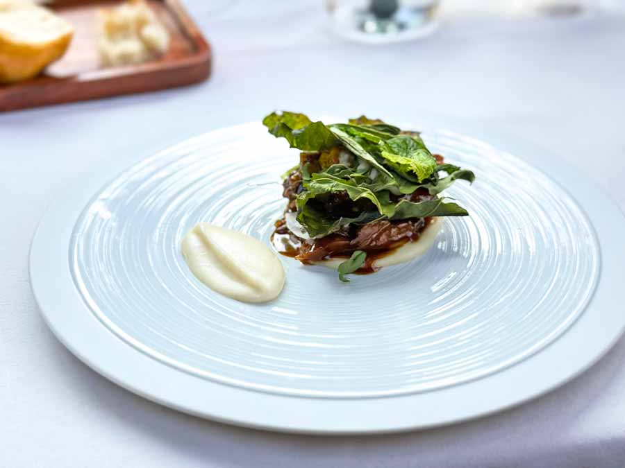 Bouillabaisse od zubaca i škampa dubok je, aromatičan, srednje koncentriran i elegantan. Špageti s jako grilanim repovima škampa u umaku od kulena apsolutno su senzacionalni; riječ je o jednom od najboljih jela koja se trenutno mogu naručiti u Zagrebu. Millefeuille od janjećeg vrata s listovima kupusnjače koji glume listove tijesta najsnažniji je izraz crvenomesne visoke bistronomije u Zagrebu, uz Horvatove cannelone od janjetine i Vinodolov burek od janjetine. Soufflé je fenomenalan, a ni brioche ne zaostaje. Jedina velika greška jest aroma tartufa na maslacu posluženom uz tartar biftek. Zbog tog nerazumljivog kičeraja Dubravkin put dobio plus četiri umjesto minus pet.