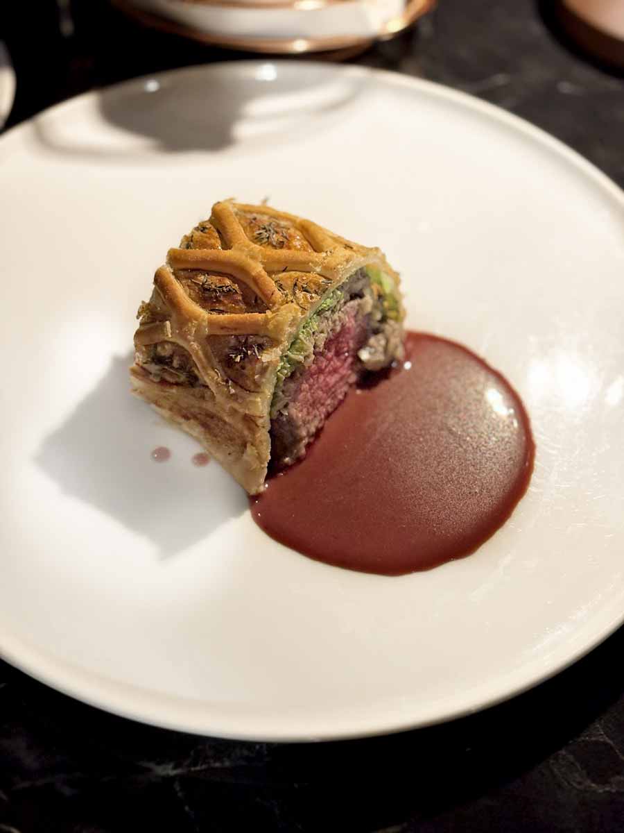 Trgana patka s comte sirom i tartufima je bila fenomenalna, puna bogatih mliječnih tekstura. Uz patku se točilo prvo crno vino večeri. Patka, comte i tartufi traže elegantno vino poput Chateaua Cantelys Rouge iz Pessac-Leognana, napravljenog od merlota i cabernet sauvignona. Školski pripremljena pačja prsa s celerom i jusom pronašla su idealnog partnera u Les Hauts du Tertre iz 2016.. Koncentritani i bogati blend cabernet sauvignona, merlota, cabernet franca i petit verdota s jakim začinskim notama lijepo je pratio patku.