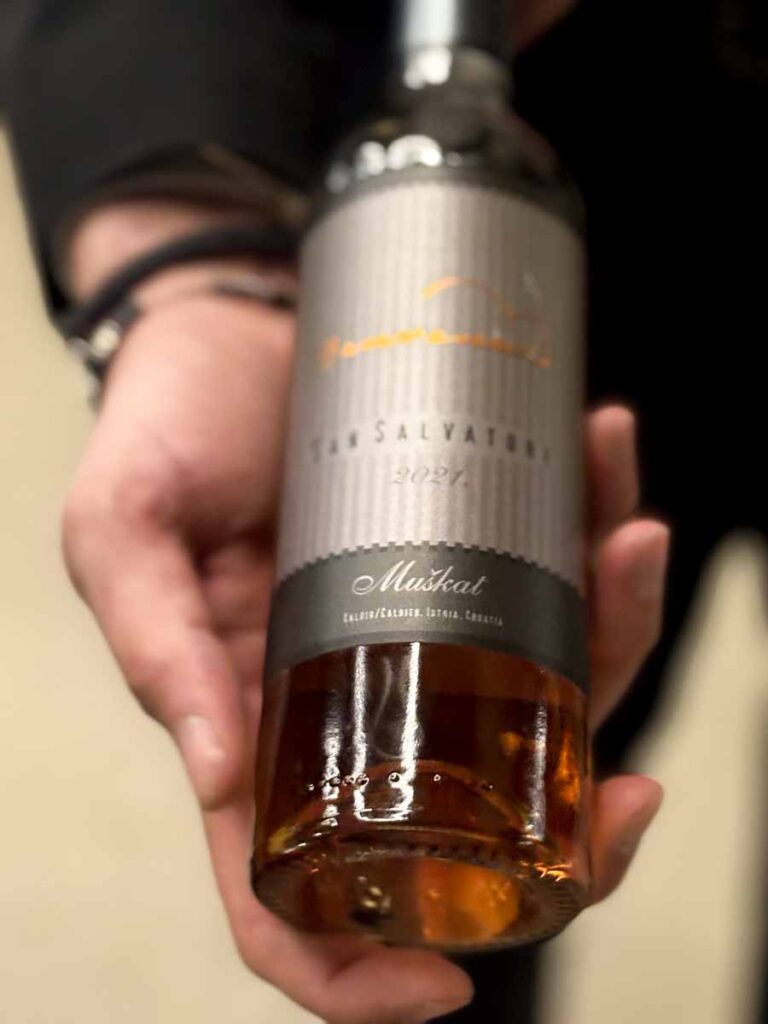 Vinska karta je prilično lijepa knjižica s hrvatskim, talijanskim, slovenskim i svjetskim etiketama među kojima je i nekoliko vrhunskih i teško nabavljivih vina. Uzeli smo vinski pairing u kojemu se izmjenjuju hrvatska i talijanska vina i koji je funkcionirao u svakom trenutku.