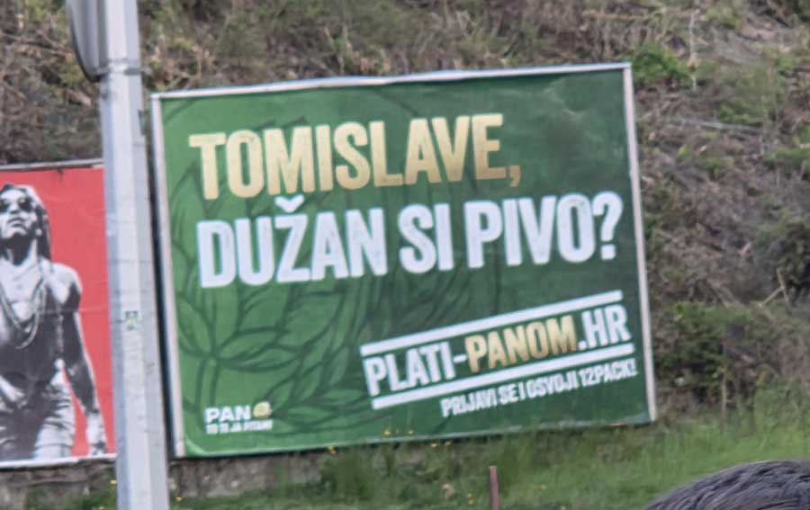 Nije, naravno, sve ostalo na HDZ-u. Zagreb je izlijepljen plakatima s natpisom Tomislave, dužan si pivo koji se očigled o odnosi na zagrebačkog gradonačelnika Tomislava Tomaševića, Plenkovićeva glavnog antagonista. Glavni element Panove kampanje je, zapravo, akcija izravnavanja pivskih dugova. Kupci na posebno određenoj web stranici mogu napisati imena ljudi kojima duguju pivo ili koji njima duguju pivo. No, pored ovako dobro pogođenih plakata kakvi su Andrej, dužan si pivo i Tomislave, dužan si pivo, svi ostali dijelovi kampanje padaju u treći plan.