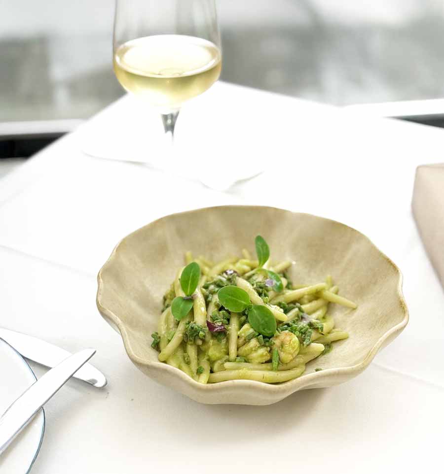 Drugo, tekstura pljukanaca upravo je savršena: naizgled meka i podatna, a zapravo vrlo čvrsti al dente. Osim Alla Beccaccie, ni jedna istarska konoba i ni jedna kvarnerska konoba ne poslužuju tako precizno pripremljenu pastu. I treće, Esplanadini pljukanci s divljim šparogama i pestom od rukole ekspresivno precizno naglašavaju okus divljih šparoga.