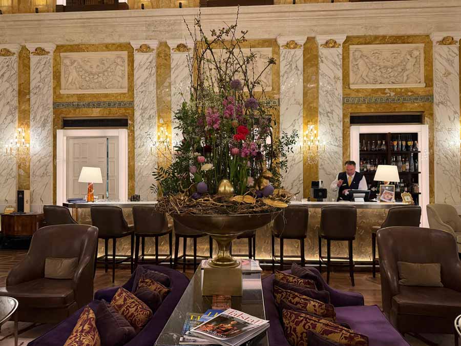 Jednako raskošno izgleda i njihov Imperial bar, koji se nalazi u produžetku recepcije u prizemlju hotela. Decentno i prigodno dekoriran za vrijeme Uskrsa, zaista je impresivan na ulasku, ali tu prestaje svaka dobra impresija.