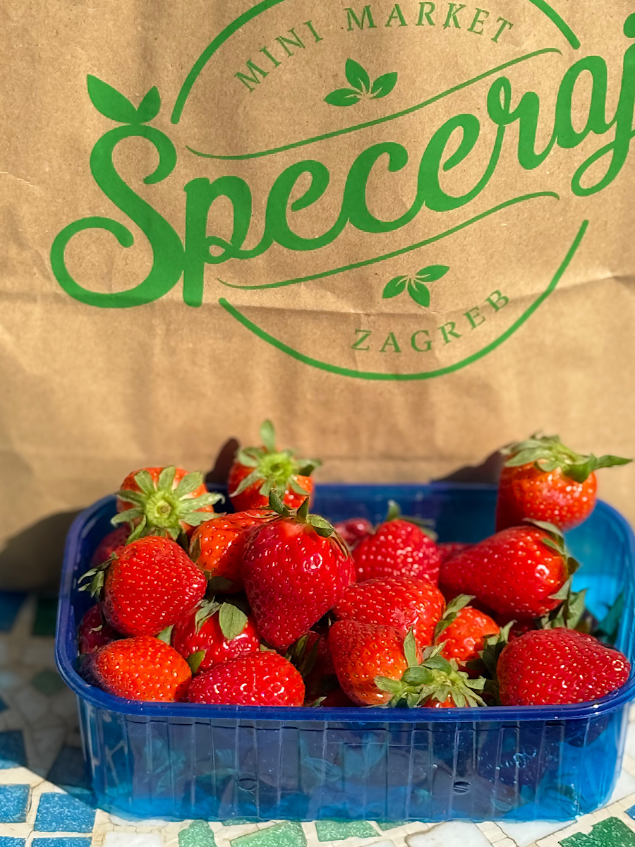Danas smo u Špeceraju u Martićevoj kupili košaricu od 690 grama jagoda, koju smo platili 8,66 eura. Čim smo izašli iz dućana, pojeli smo najveću i ostali očarani: imali smo dojam kao da se cijelom Martićevom proširio opojni miris jagoda. Sama je jagoda bila umjereno slatka, čvrsta, nimalo vodenasta, s dugim aftertasteom jednog od najljepših okusa na svijetu.
