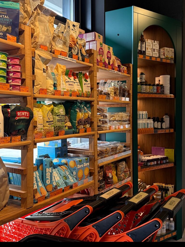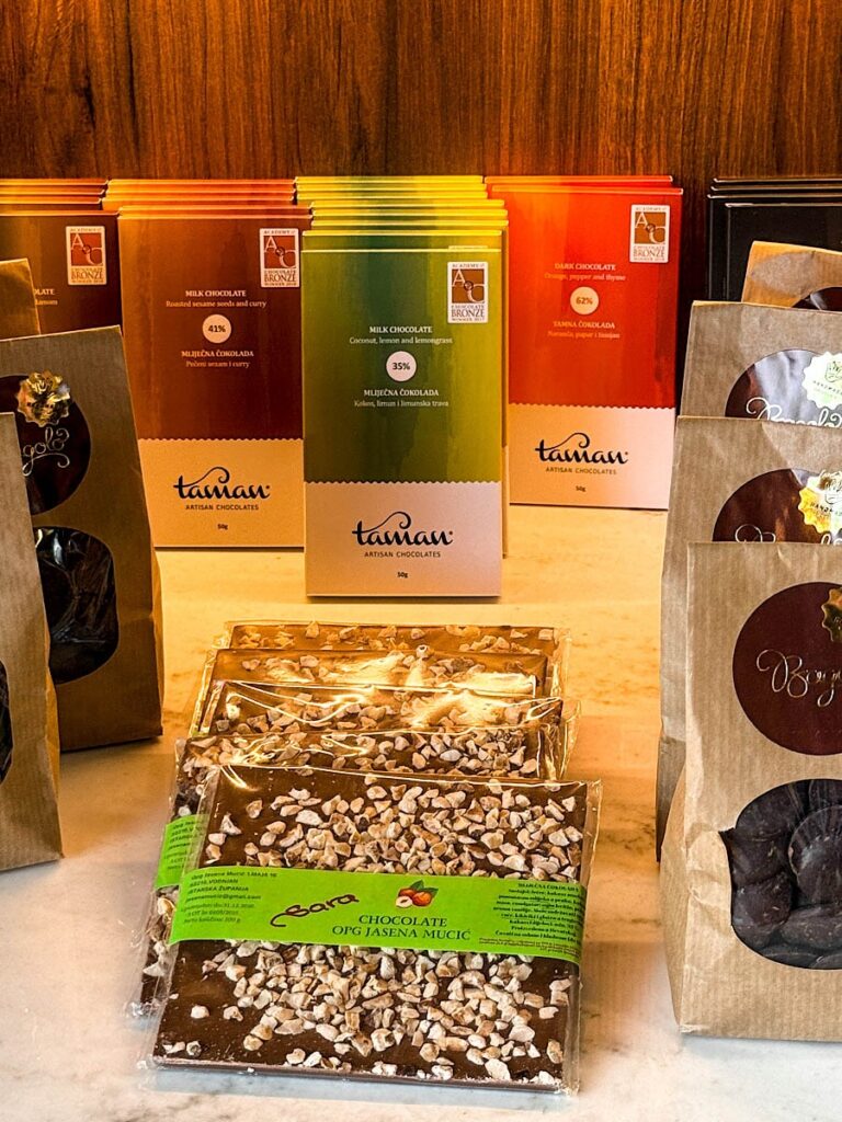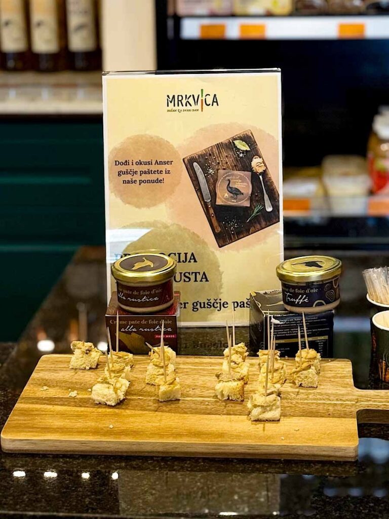 U posebnom kutku s čokoladama prodaju se table Taman, uvjerljivo najbolje hrvatske čokolaterije. A među vinima ističu se Korakove, Testamentove, Tomčeve i Štamparove butelje. Veliki pult s voćem i povrćem izgleda bitno privlačnije nego u supermarketima. Naposljetku, što nije nevažno, Mrkvica nije skupa: punu košaricu, uključujući plavoperajnu tunu i med, platili smo 55 eura.